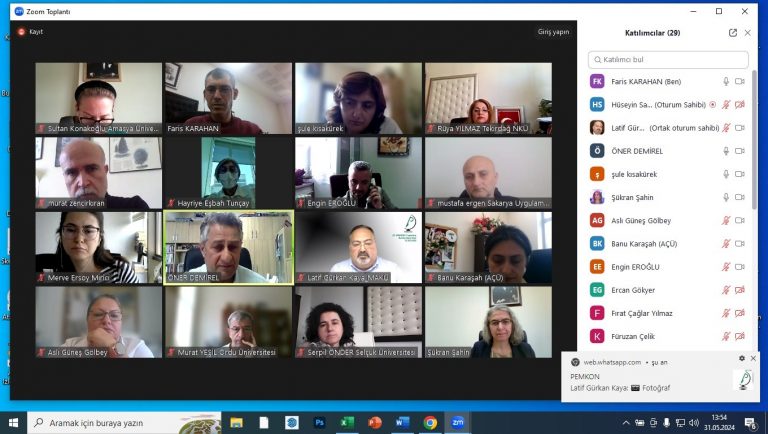 Türkiye Peyzaj Mimarlığı Bölüm Başkanları Konseyi, Burdur Mehmet Akif Ersoy Üniversitesi’nin ev sahipliğinde ve 12. Dönem Başkanı Prof. Dr. Latif Gürkan KAYA’nın yürütücülüğünde 31 Mayıs Cuma günü 13:30-17:00 saatleri arasında çevrimiçi olarak gerçekleştirilmiştir. Toplantıda (1) 24. PEMKON sonrasındaki gelişmeler, (2) 3. Peyzaj Mimarlığı Eğitim Öğretim Çalıştay süreci, (3) Peyzaj Mimarlığı Lisans Programlarında uygulanmakta olan formasyon programı ve yaşanılan sorunlar, (4) 7+1, 6+2 ya da 8+2 Eğitim‐Öğretim Program Uygulamalarının Peyzaj Mimarlığı Lisans Programları açısından durumu ve (5) Farklı Üniversite ve Farklı Fakülte Bünyesinde Yer Alan Peyzaj Mimarlığı Bölümlerinin Lisans Programlarına ait Diplomalarda Yaşanan Farklılar, diğer Mimarlık veya Mühendislik Programlarında olduğu gibi “Ünvanlı” olarak Mezuniyet Belgelerinin Verilmesi hususları görüşülmüştür. Toplantının son gündem maddesi olarak PEMKON 13. Dönem Başkanlığı seçimi gerçekleştirilmiştir. PEMKON 13. Dönem Başkanlığına Kırıkkale Üniversitesi Güzel Sanatlar Fakültesi Peyzaj Mimarlığı Bölüm Başkanı Prof. Dr. Öner DEMİREL oy birliği ile seçilmiştir.