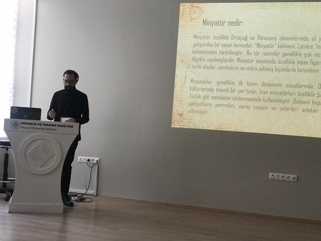 Peyzaj Mimarlığı Ana Bilim Dalı Seminer ve Tez Önerileri Sunum Programı kapsamında 17 Ocak 2025 Cuma günü sırasıyla Tezli Yüksek Lisans Programı öğrencilerinden Prof. Dr. Sevgi YILMAZ danışmanlığında Gizem DEDEOĞLU “Kentsel Mekanlarda Sayısal Akışkanlar Dinamiği (CFD) için Rüzgar Analizinde ANSYS Yazılımının Kullanım Alanları” konulu Seminer ve “Yeni Yerleşim Alanında Mikro- İklime Duyarlı Peyzaj Tasarım Önerilerinin Envı-Met İle Analizi: Erzurum Toki Örneği” konulu Tez Önerisi; Prof. Dr. Nalan DEMİRCİOĞLU danışmanlığında Sepehr DANESHPOUR “Çöl Peyzajı Tasarımı: “Kerman Bahçesi” Örneği” konulu Seminer ve “İran Bahçesi’nin Minyatürdeki Görünümleri: Şehname Minyatürleri ve Bahçe Tasvirleri” konulu Tez Önerisi ve Doç. Dr. Elif AKPINAR KÜLEKÇİ danışmanlığında Nisanur GÜL “Çocuk Oyun Parklarında Kullanılan Farklı Peyzaj Donatıları ve Geri Dönüşümlü Oyun Parkları” konulu Seminer ve “Erzurum Kentinde Bulunan Site ve Konut Bahçelerinin Peyzaj Uygulamalarının Peyzaj Tasarım İlkeleri Yönünden İncelenmesi” konulu Tez Önerisi sunumlarını başarılı bir şekilde gerçekleştirmişlerdir. Tezli Yüksek Lisans Programı öğrencilerimizi ve danışmanlarını tebrik ederiz.