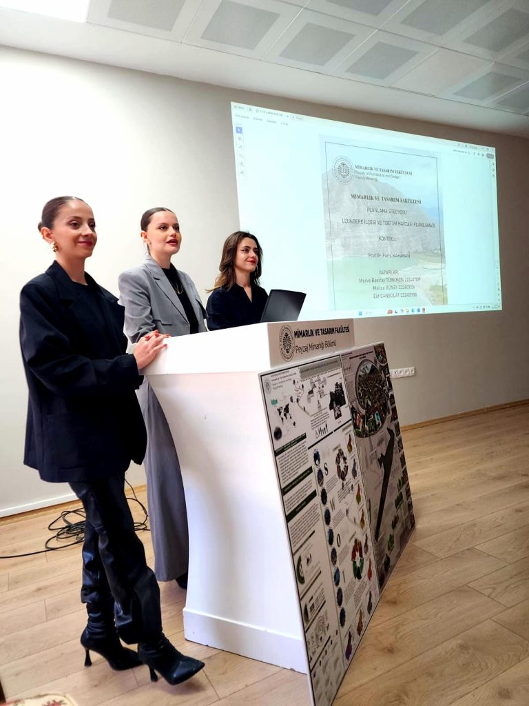 Ders yürütücüleri Prof. Dr. Sevgi YILMAZ, Prof. Dr. Faris KARAHAN ve Prof. Dr. Metin DEMİR danışmanlığında yürütülen planlama süreci, Tortum Gölü Havzası’nın kırsal peyzaj karakteristiği doğrultusunda sürdürülebilir kalkınma ilkeleriyle ele alınmasını amaçlamıştır.