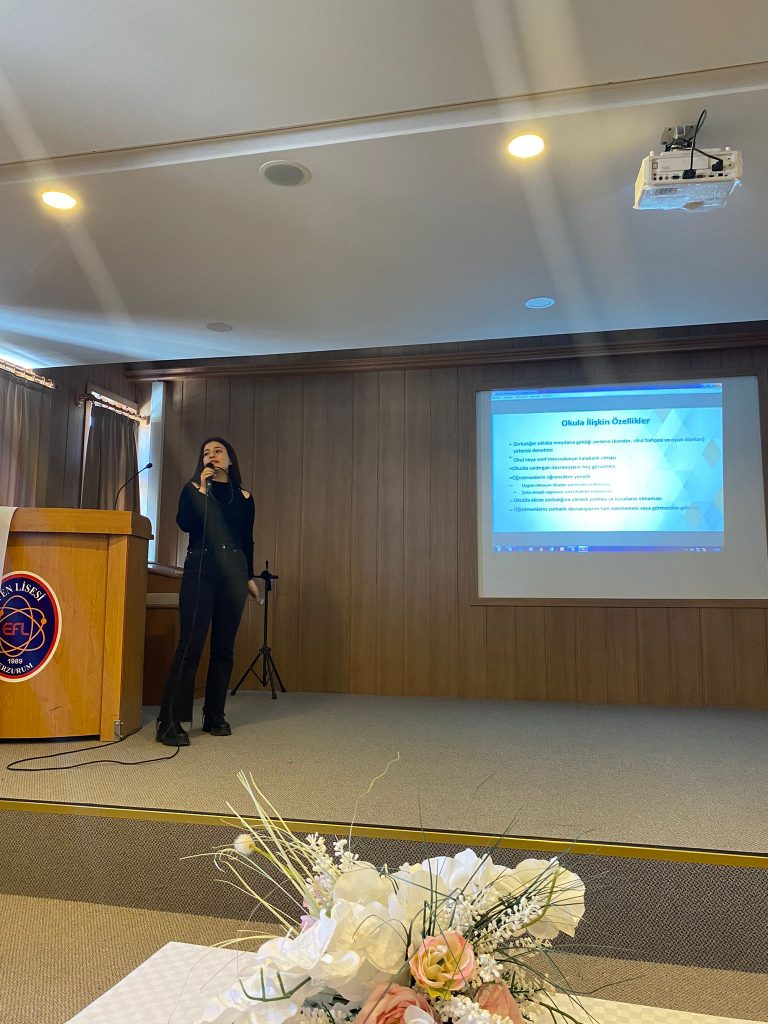 Öğrencilerimizden Elif Karatepe, Merve Yazıcı ve Yeşim Özdemir Prof. Dr. Zeynep Karaman Özlü  danışmanlığında çeşitli sosyal sorumluluk projeleri gerçekleştirmişlerdir. Öğrencilerimiz 28 Aralık Perşembe günü İbrahim Hakkı Fen Lisesi’nde “Akran Zorbalığı” konulu bir sunum gerçekleştirmişlerdir. Diğer bir proje olarak ise Araştırma Hastanesi Psikiyatri Servisi’nde yatan hastalara uğraş terapisi çalışmasında bulunmuşlardır.