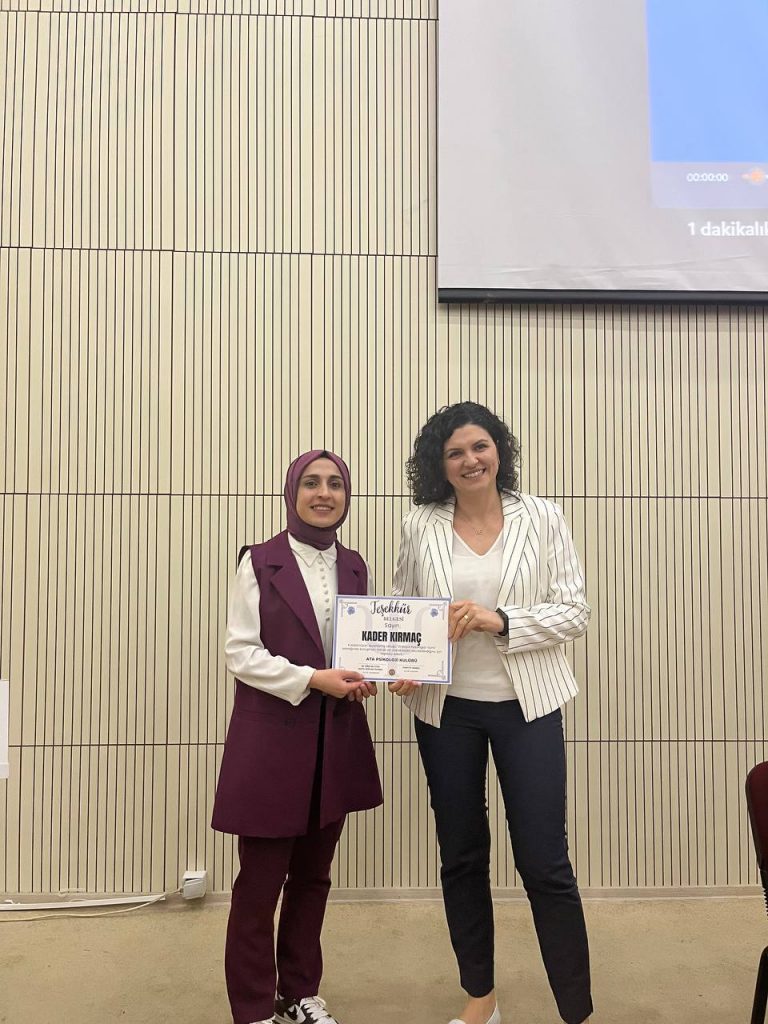 23 Mayıs 2024 10 Mayıs Psikologlar Günü Kutlaması Bölümümüzde 10 Mayıs Psikologlar günü Türk Psikologlar Derneği Genel Sekreteri Klinik Sağlık Psikoloğu Faruk Bozkır, Dr. Öğr. Üyesi Klinik Psikolog İlayda Türk Höl ve öğrencilerimizden Kader Kırmaç’ın sunumları ile kutlanmıştır.