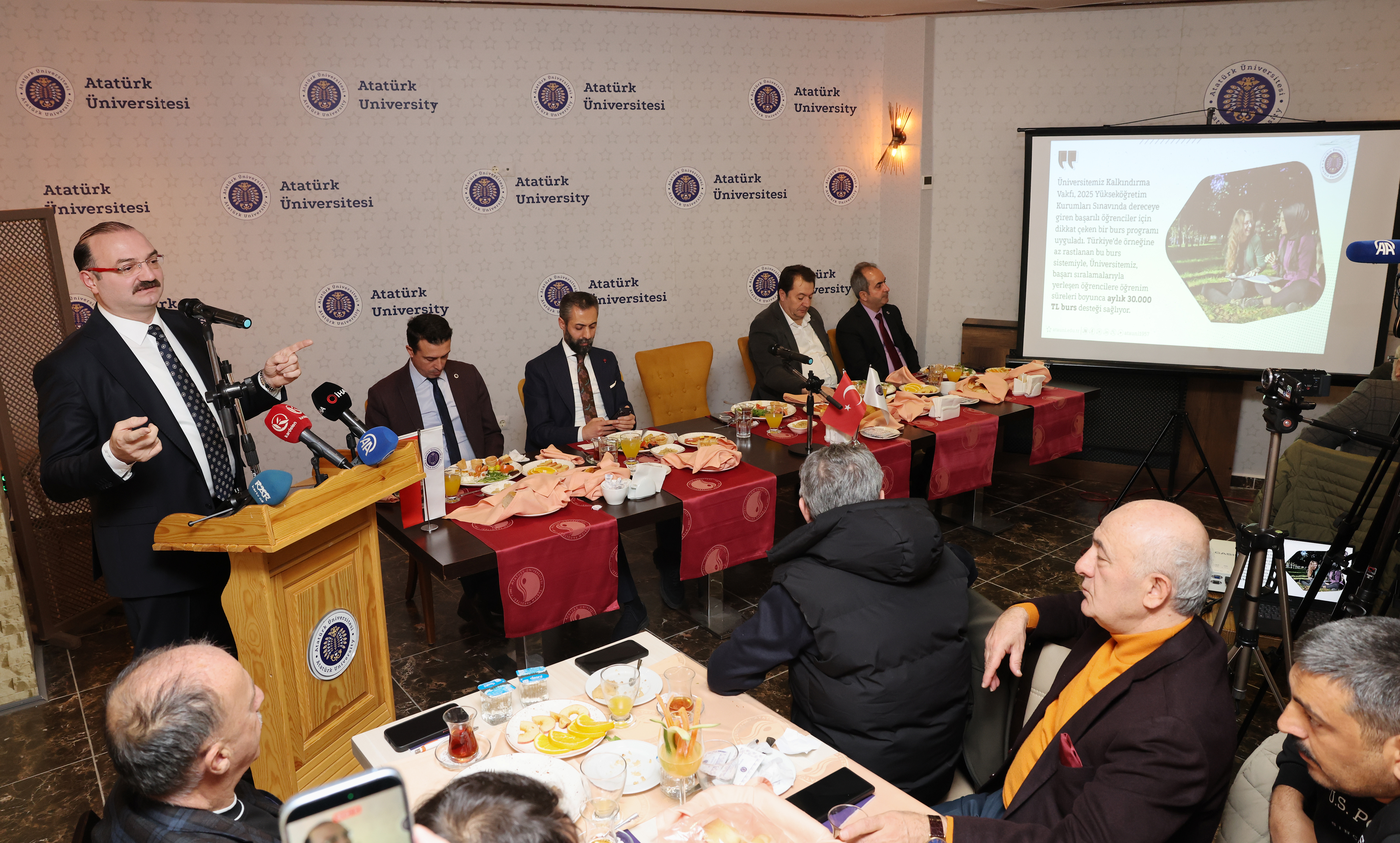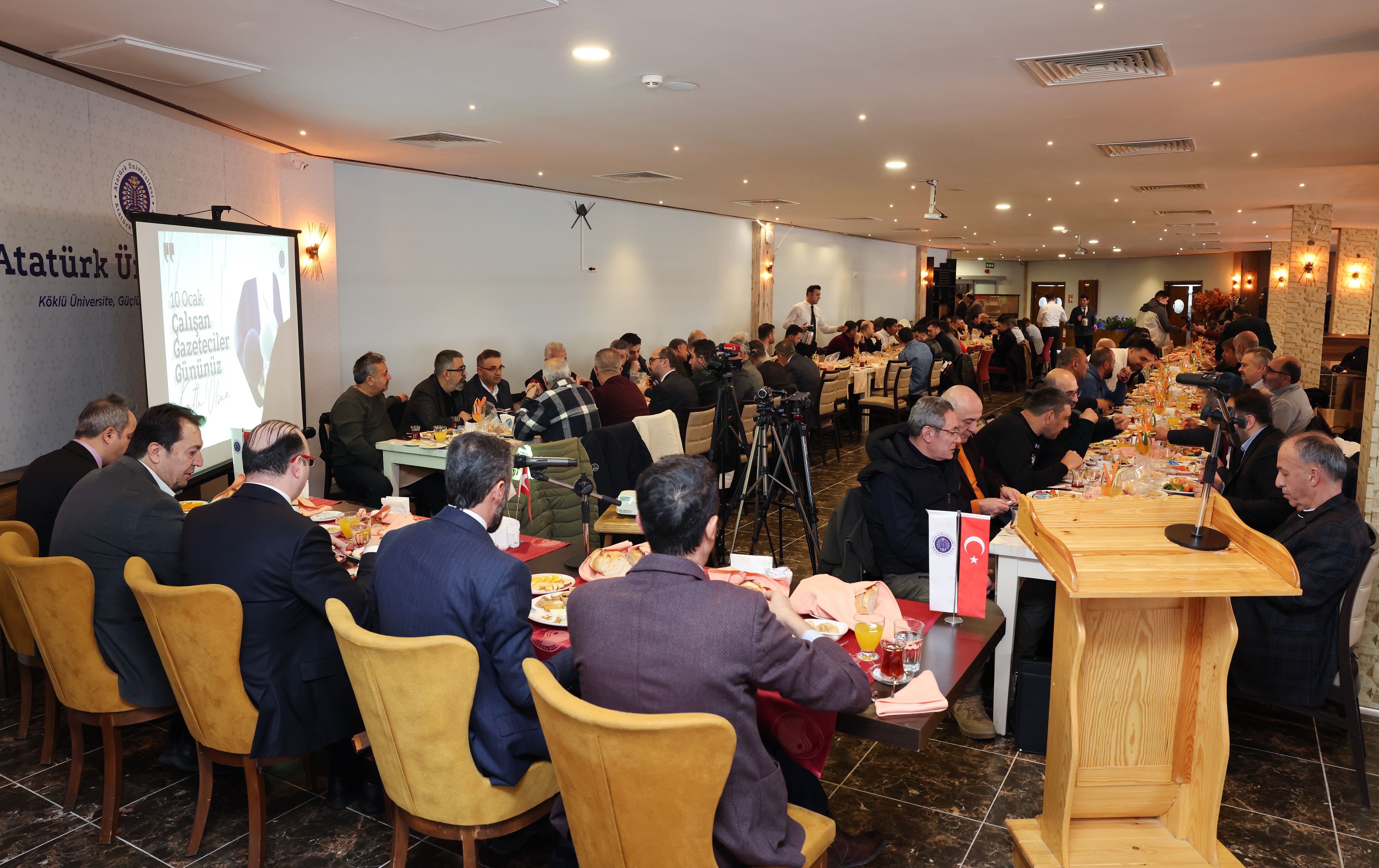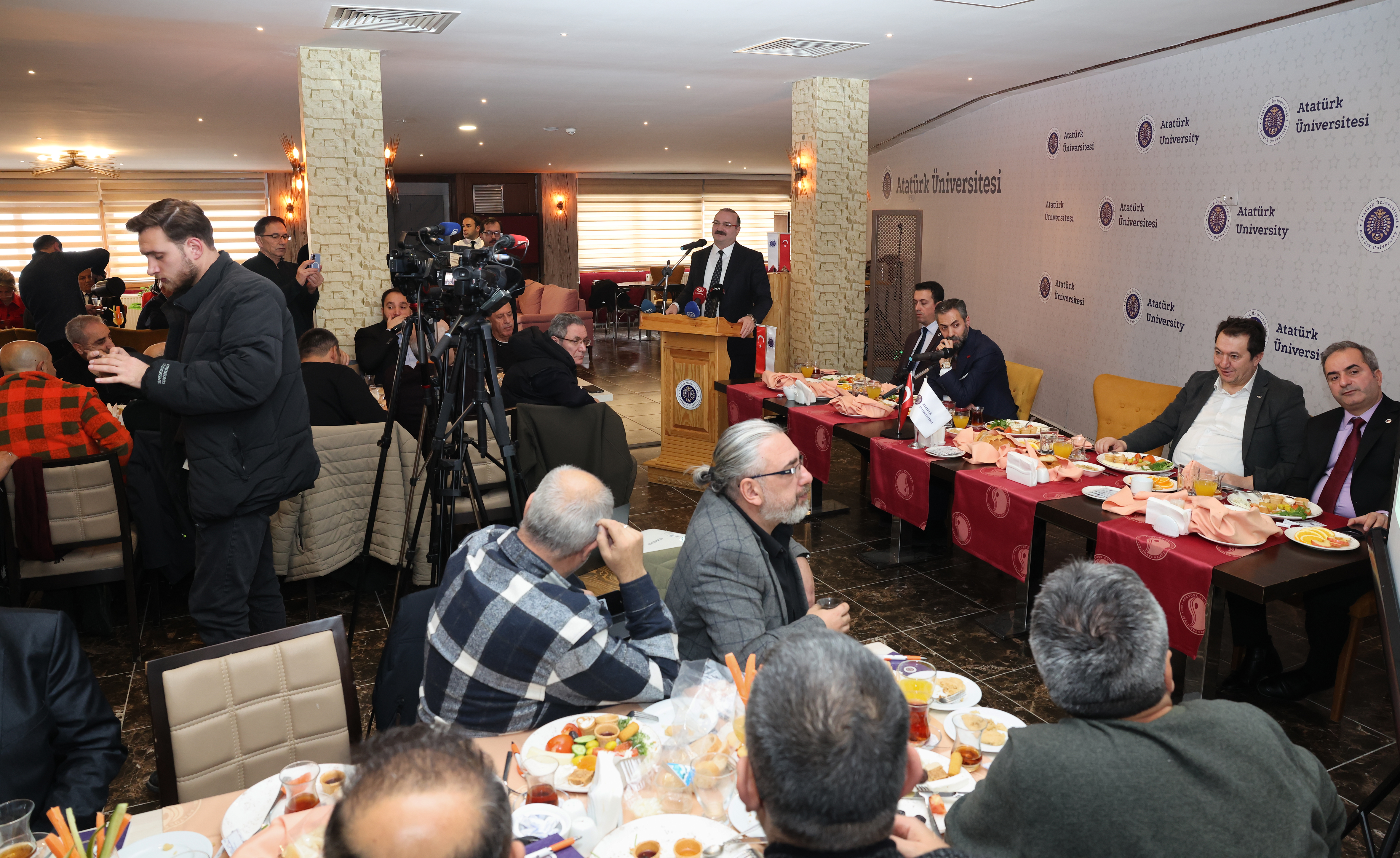 Atatürk Üniversitesi Rektörü Prof. Dr. Ahmet Hacımüftüoğlu, 10 Ocak Çalışan Gazeteciler Günü dolayısıyla Erzurum’da görev yapan basın mensuplarıyla bir araya geldi. Düzenlenen kahvaltı programında gazetecilerin bu anlamlı günü kutlanırken, Erzurum basın tarihinin önemi ve günümüz gazeteciliğinin taşıdığı sorumluluklar da ele alındı.