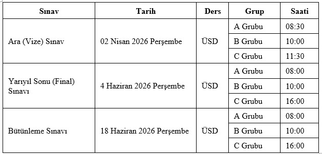 2025-2026 EĞİTİM ÖĞRETİM YILI BAHAR YARIYILI ÜNİVERSİTE SEÇMELİ DERS SINAV TAKVİMİ VE UYGULAMA İLKELERİ