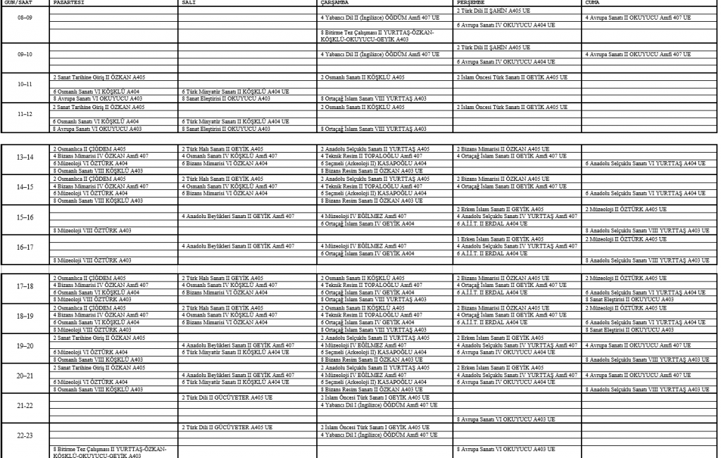 2021-2022 Bahar Ders Programı
