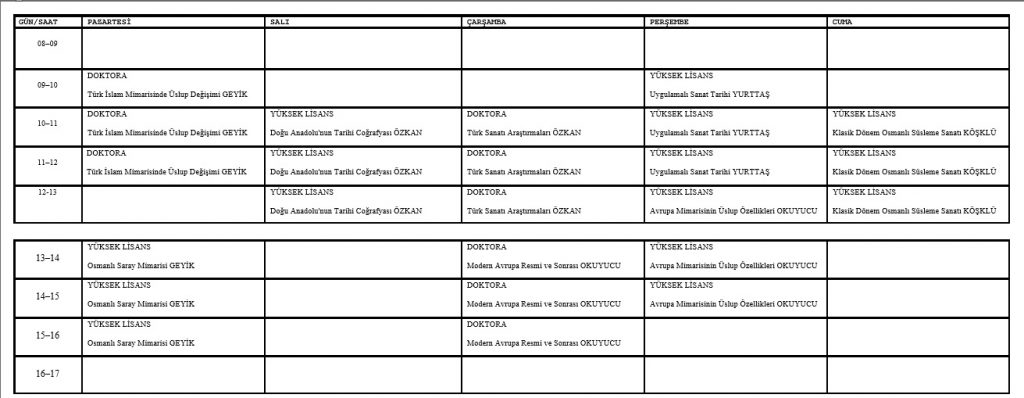 Lisansüstü Ders Programı