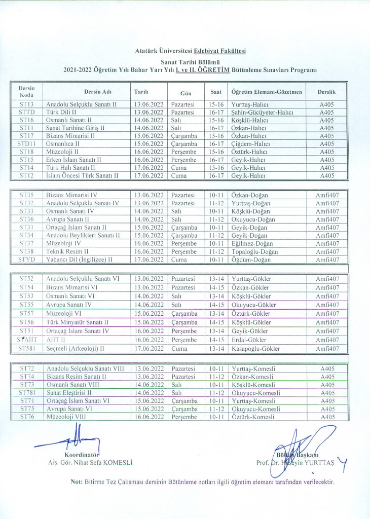 2021-2022 Bahar Yarı Yılı Bütünleme Programı