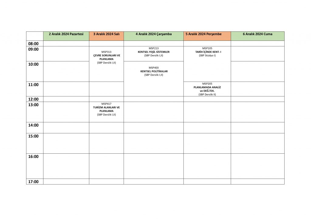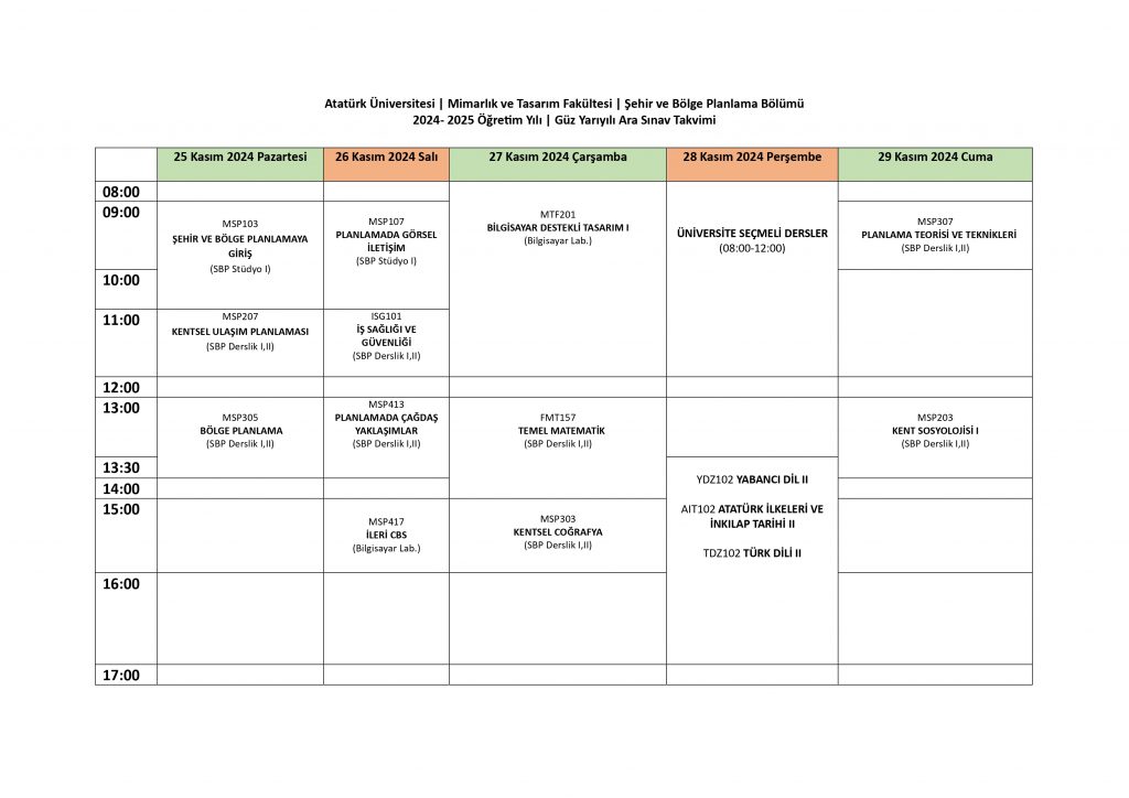 2024-2025 Yılı Güz Dönemi Ara Sınav Takvimi