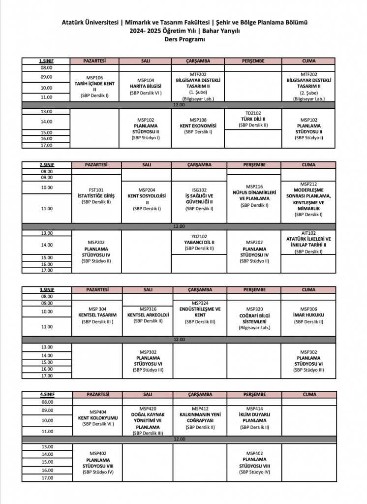 2024- 2025 Öğretim Yılı Bahar Yarıyılı Ders Programı