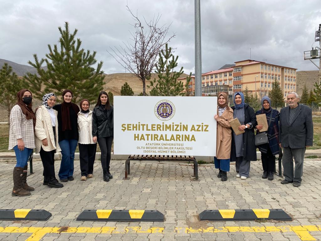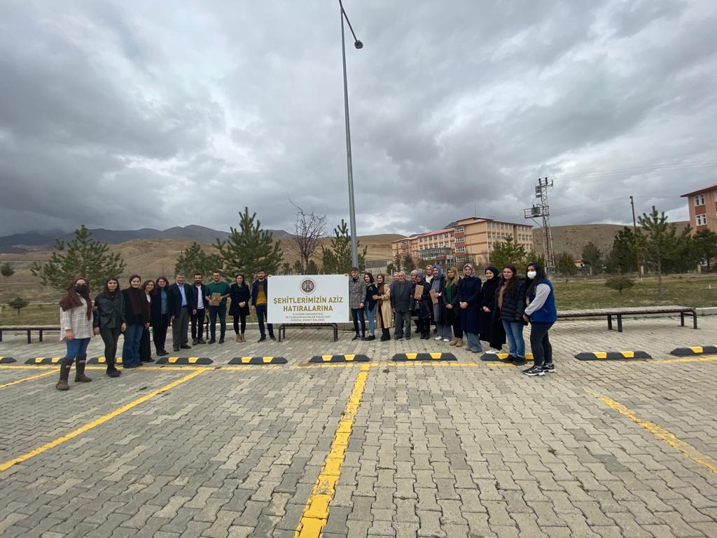 “Şehitlerimizin Aziz Hatıralarına” isimli toplumsal duyarlılık projesi öğretim üyelerimiz, öğrencilerimiz ve şehit ailelerinin katılımıyla gerçekleştirildi. Proje kapsamında Oltu Beşeri ve Sosyal Bilimler Fakültesi kampüsünün bir bölümüne şehitler anısına fidan dikimi yapıldı. Program sonunda şehit ailelerine, evlatlarının adına hatıra kartları ve bayrak hediye edildi.