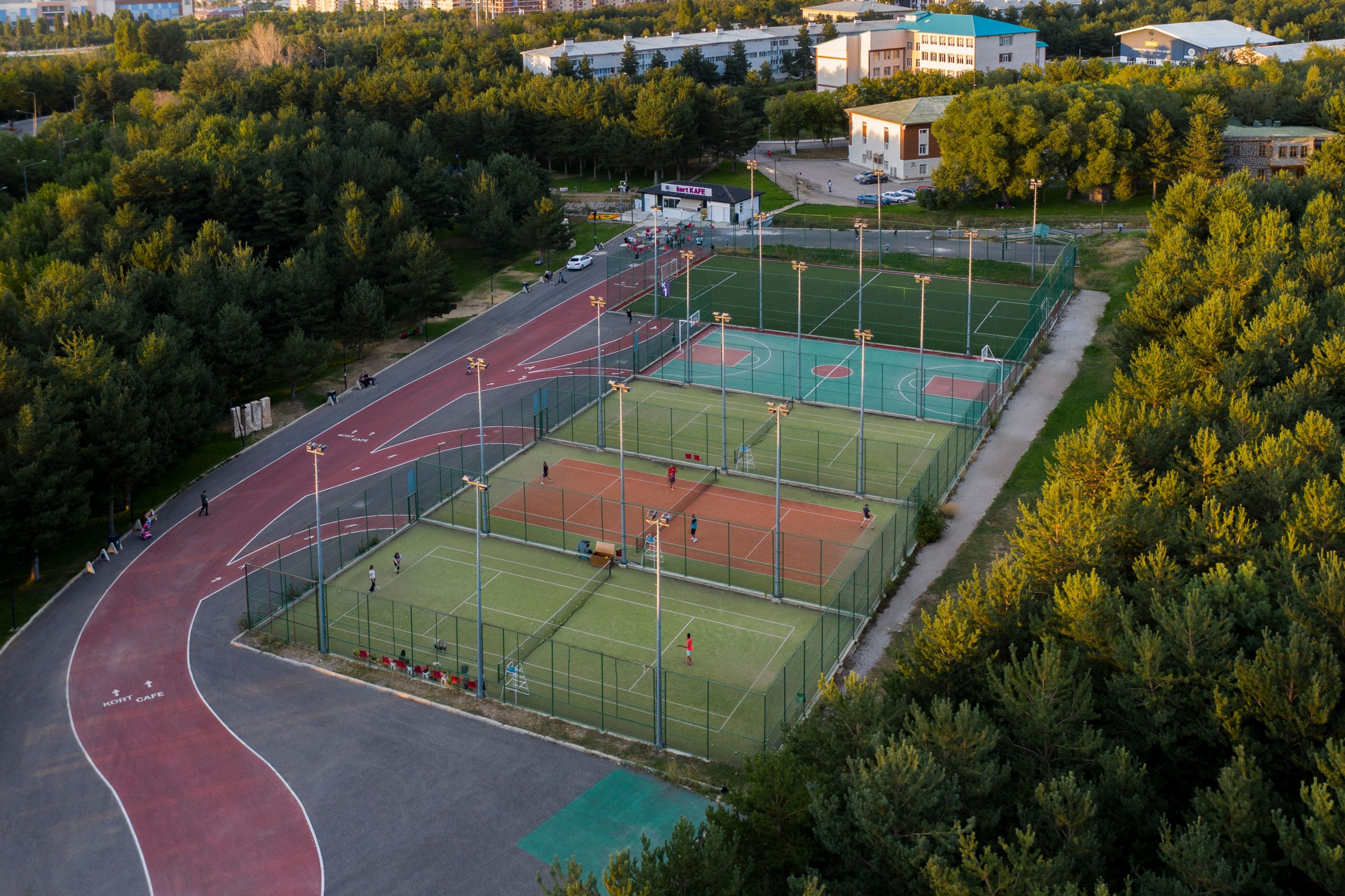 futbol, basketbol ve tenis kortları