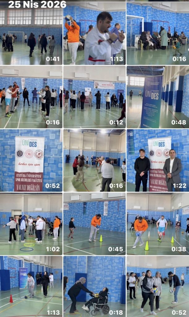 Atatürk Üniversitesi Spor Bilimleri Fakültesi olarak, Gençlik ve Spor Bakanlığı ÜNİDES Projesi kapsamında destek almaya hak kazandığımız ve Spor Organizasyonları Öğrenci Kulübü ile Erzurum Zihinsel Engelliler Derneği paydaşlığında yürüttüğümüz, özel zihinsel gereksinimli çocuklarımıza yönelik “YALNIZ DEĞİLSİN” projemizin 2. hafta etkinliklerine başlamış bulunmaktayız.