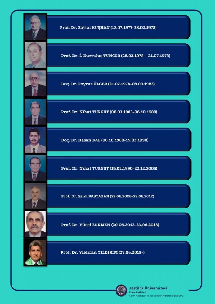 1991 yılında adı Tarım Makinaları Bölümü olarak değiştirilen bölüm 2015 yılına kadar bu isimle eğitim öğretim faaliyetlerini sürdürmüştür. 2015 yılında ülke genelinde aynı isimle eğitim veren bölümlerin ortak kararı ile Tarım Makinaları ve Teknolojileri Mühendisliği Bölümü ismini alarak eğitim öğretim ve araştırma faaliyetlerini sürdürmektedir. Bölümüzde 3 Profesör, 1 Doçent, 2 Araştırma Görevlisi, bulunmakta, idari, teknik ve yardımcı personel olarak 3 kişi görev yapmaktadır.