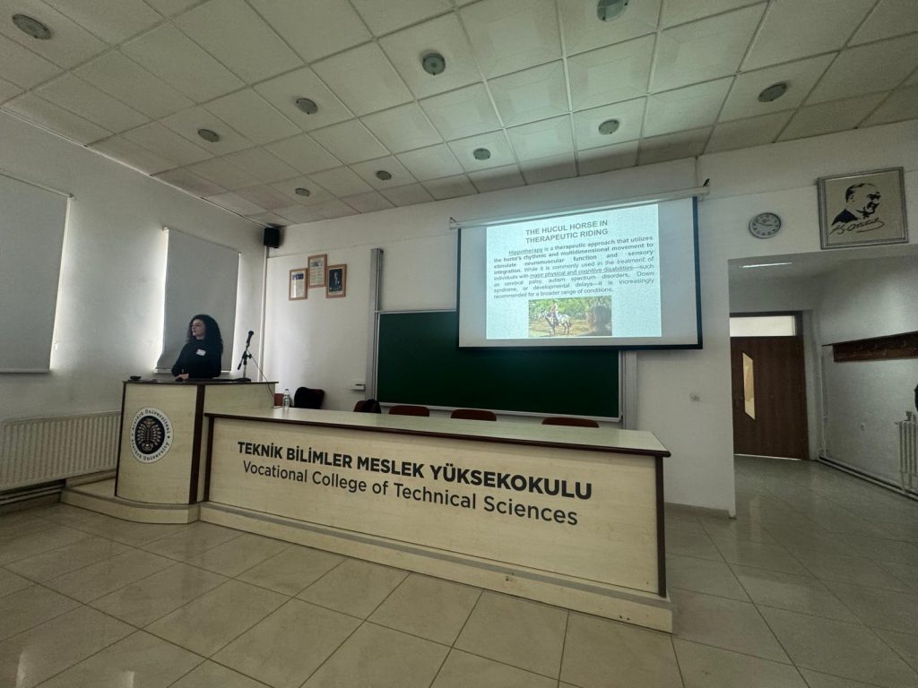 Bu eğitim, atçılıkla ilgilenen akademisyenler ve öğrenciler için önemli bir fırsat sundu. Uzmanlar, “Karpatlardan Kliniklere: Yetiştirme ve Terapötik Binicilikte Hucul Atı” başlıklı derslerinde, Hucul atının karakteristik özelliklerini ve bu özel at türünün terapötik binicilikteki rolünü detaylı bir şekilde ele aldılar. Katılımcılar, Romanya bölgesinde Hucul atlarının yetiştirilmesi ve rehabilitasyon süreçlerinde kullanılmasına dair karşılıklı görüş alışverişinde bulunarak bilgi ve deneyimlerini paylaştılar.