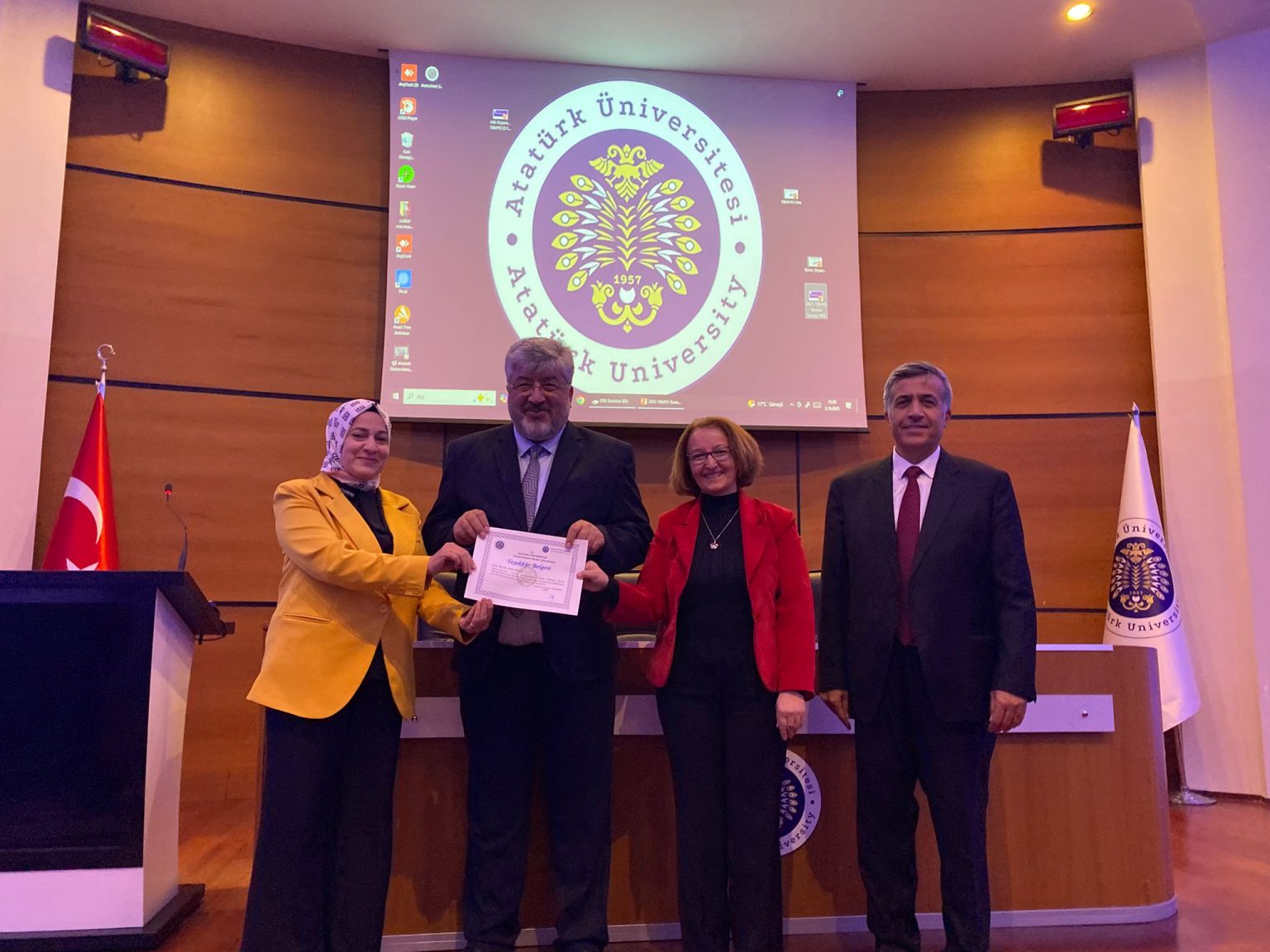 Öğrencilerimizle birlikte 2209 TÜBİTAK Projesi kabulü alan öğrenci ve hocalarımıza, Teknofest ISI’25’te derece elde eden bölüm hocalarımıza ve öğrencilerimize, TBMYO’ya eğitim desteği sunan değerli hocalarımıza teşekkür ve tebrik belgeleri takdim edildi.
