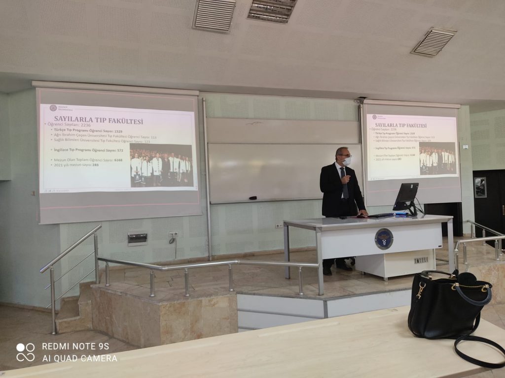 2021-2022 Eğitim-Öğretim Yılı Türkçe ve İngilizce Tıp Programı Açılış ve Oryantasyon Toplantısı 27.09.2021 Pazartesi günü Fakültemiz Öğretim Üyeleri ve Öğrencilerinin katılımı ile COVİD-19 Pandemisi önlemleri alınarak öğrenci amfilerinde gerçekleştirildi.
