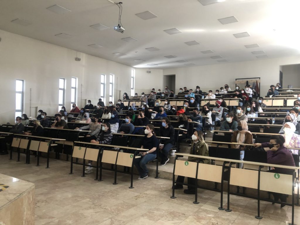2. ve 3. Sınıf Türkçe ve İngilizce Tıp Programı öğrencileri de amfilerinde ziyaret edilerek COVİD-19 Enfeksiyonundan korunma önlemleri ve bu dönemde sürdürülecek eğitim süreci hakkında bilgilendirildi.