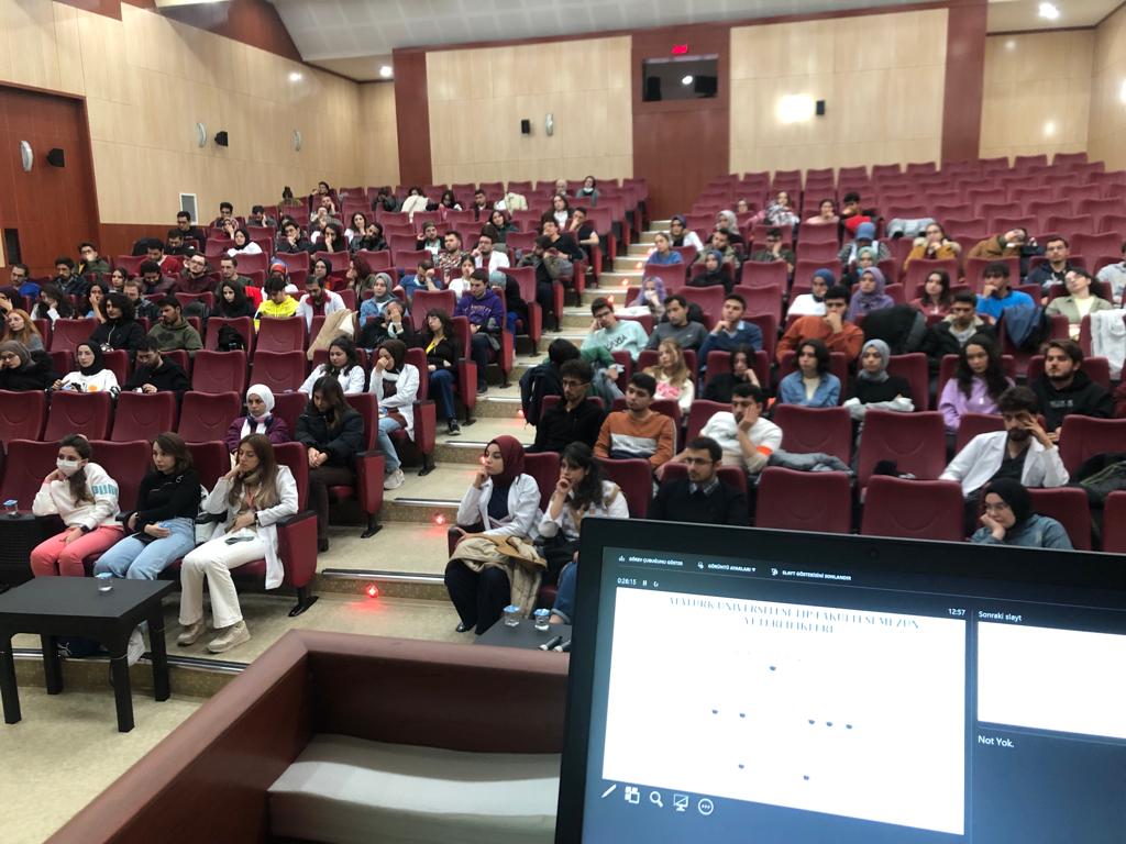 “Fakülte Dekanı ile Söyleşi” konseptinde öğrencilerimizle gerçekleştirilen toplantılarda, Stajyer ve İntern öğrencilerimiz Başhekimlik Konferans salonunda, Klinik öncesi öğrencilerimiz ise amfilerinde Fakülte dekanımız Prof. Dr. Fatih ALBAYRAK, dekan yardımcıları ve dönem koordinatörleri ile bir araya geldiler.