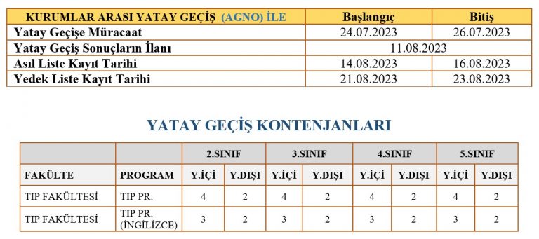 2023-2024 Kurumlar Arası, Yurt İçi – Yurt Dışı Yatay Geçiş Duyurusu