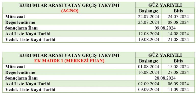8) 6698 sayılı Kişisel Verilerin Korunması Kanunu kapsamında olmak üzere, 2024-2025 eğitim-öğretim yılı güz dönemi yatay geçiş başvuru sonuçları Öğrenci Bilgi Sisteminde ilan edileceğinden, birim internet sayfalarında başvuru sonuçlarına dair herhangi bir liste yayımlanmayacaktır.