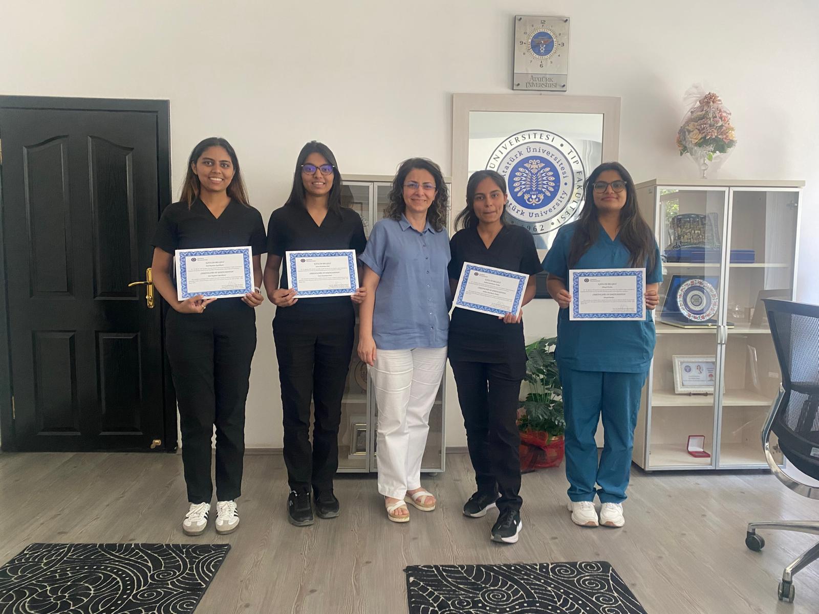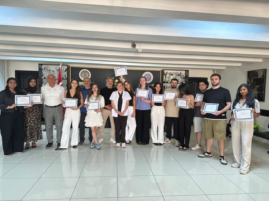 04–24 Ağustos 2025 tarihleri arasında Genel Cerrahi, Acil Tıp, Radyoloji, Kalp Cerrahisi, Robotik Cerrahi, İç Hastalıkları ve Cerrahi Onkoloji anabilim dallarında gözlemci olarak eğitim alan 6. sınıf intörn öğrencilerden oluşan 20 kişilik grup, program sonunda sertifikalarını aldı.