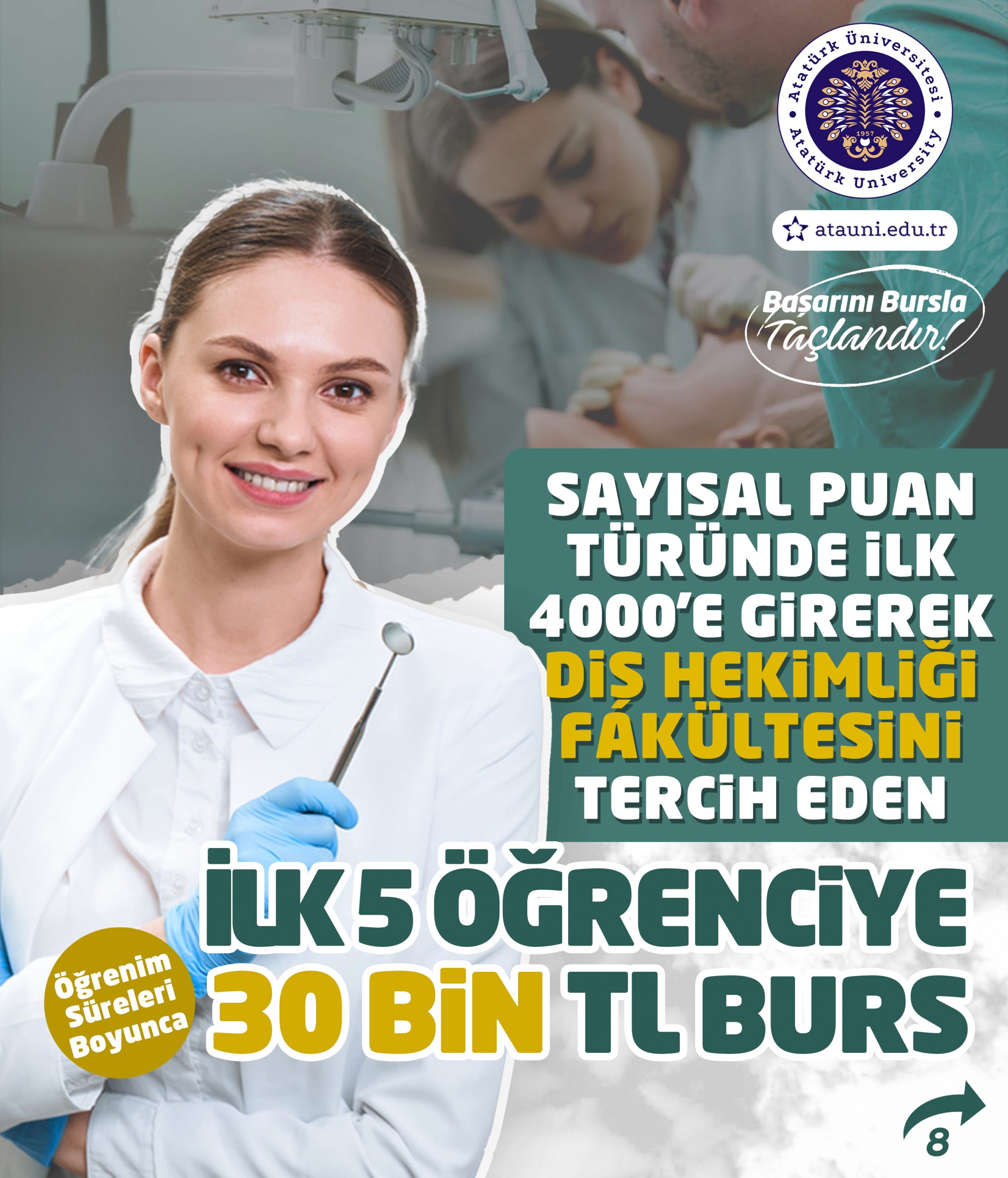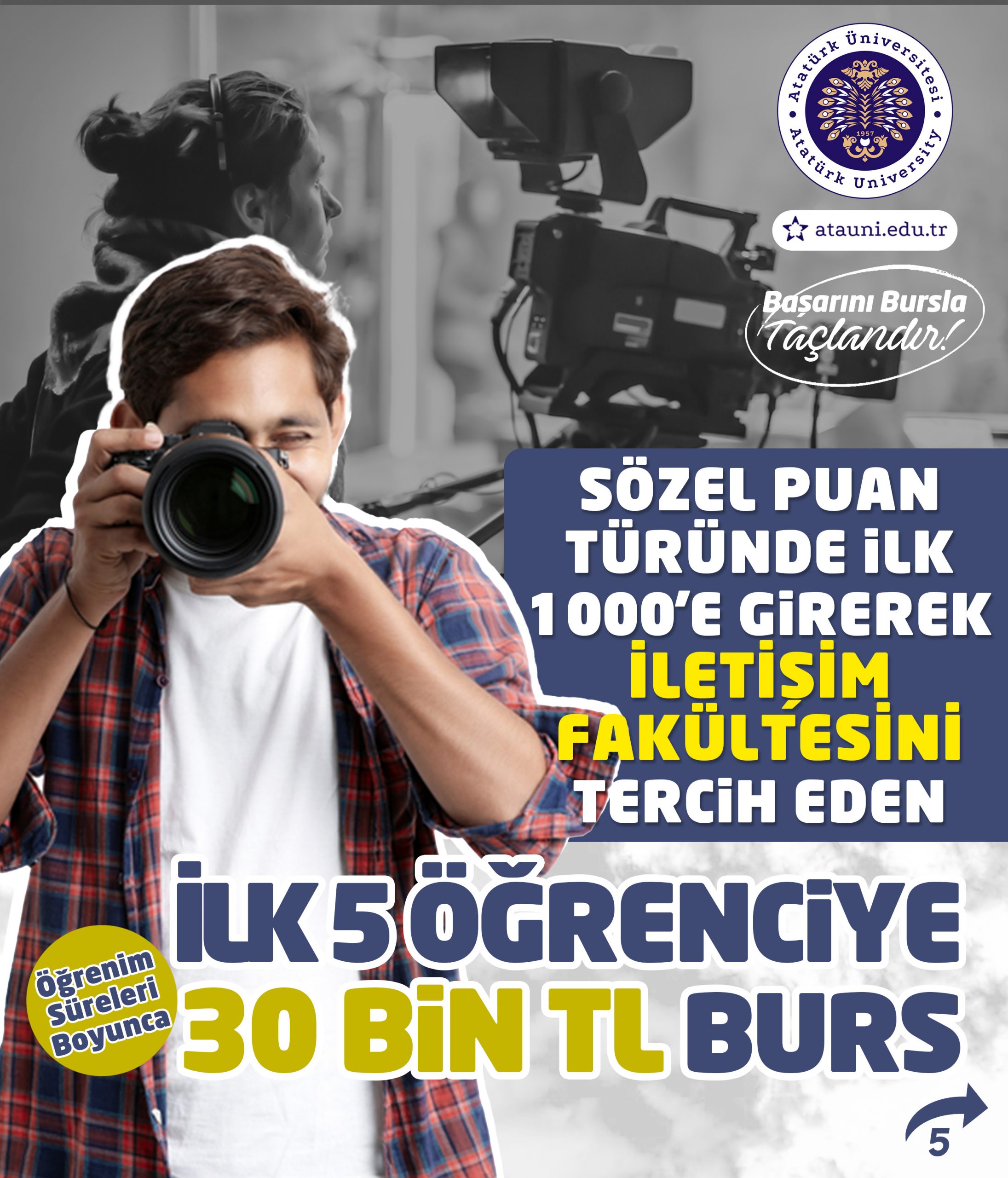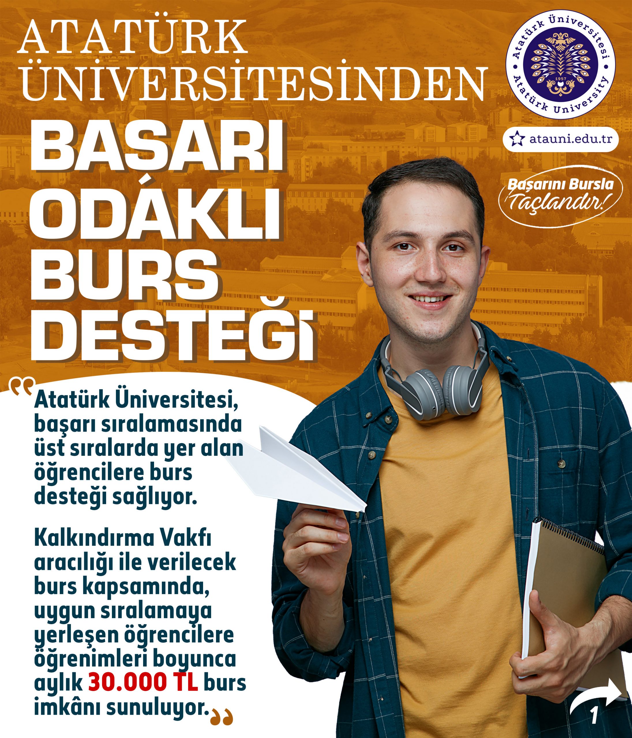 Atatürk Üniversitesi Kalkındırma Vakfı, Yükseköğretim Kurumları Sınavında derece yapan öğrencilerimize aylık 30.000TL burs imkânı sunuyor!