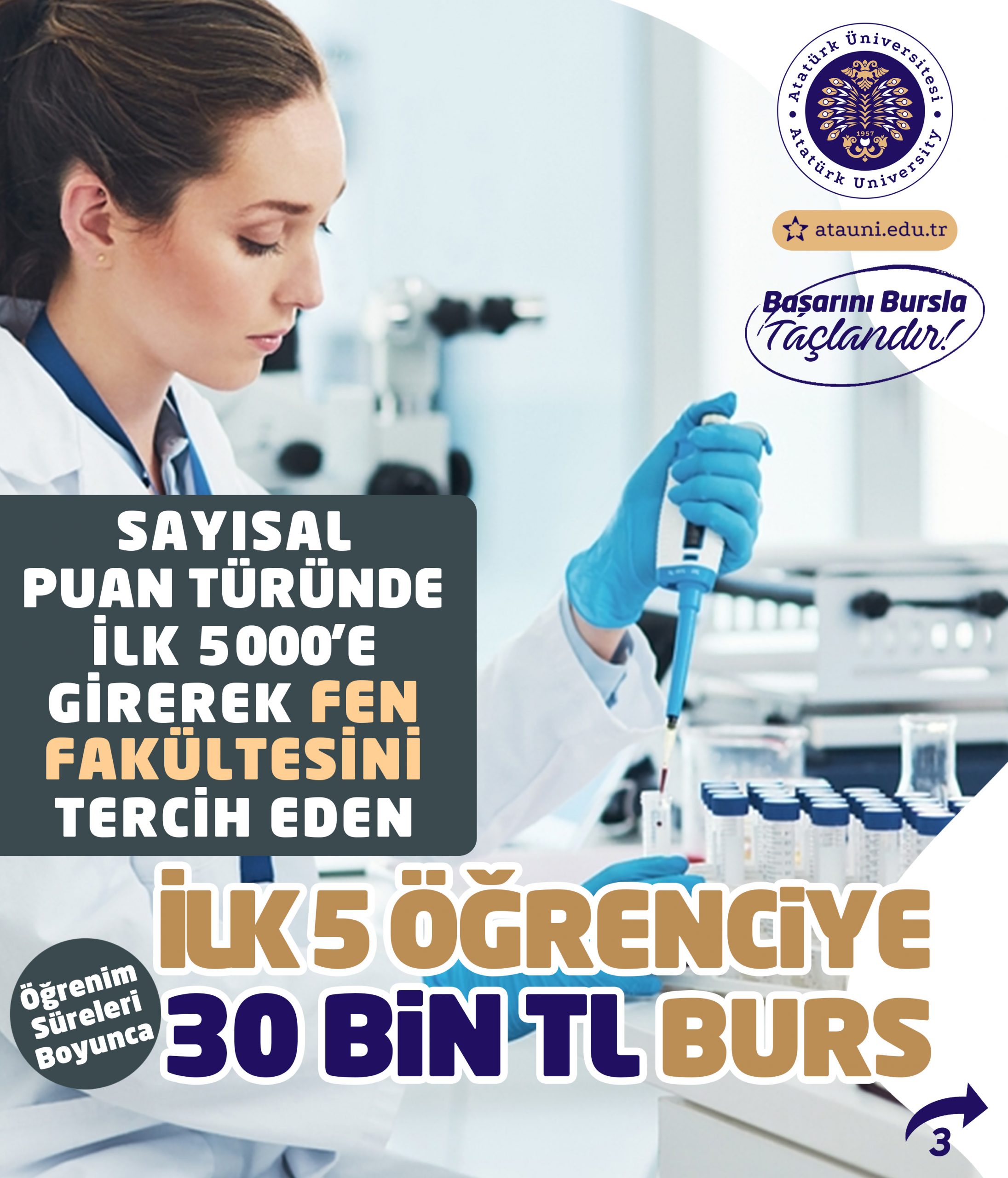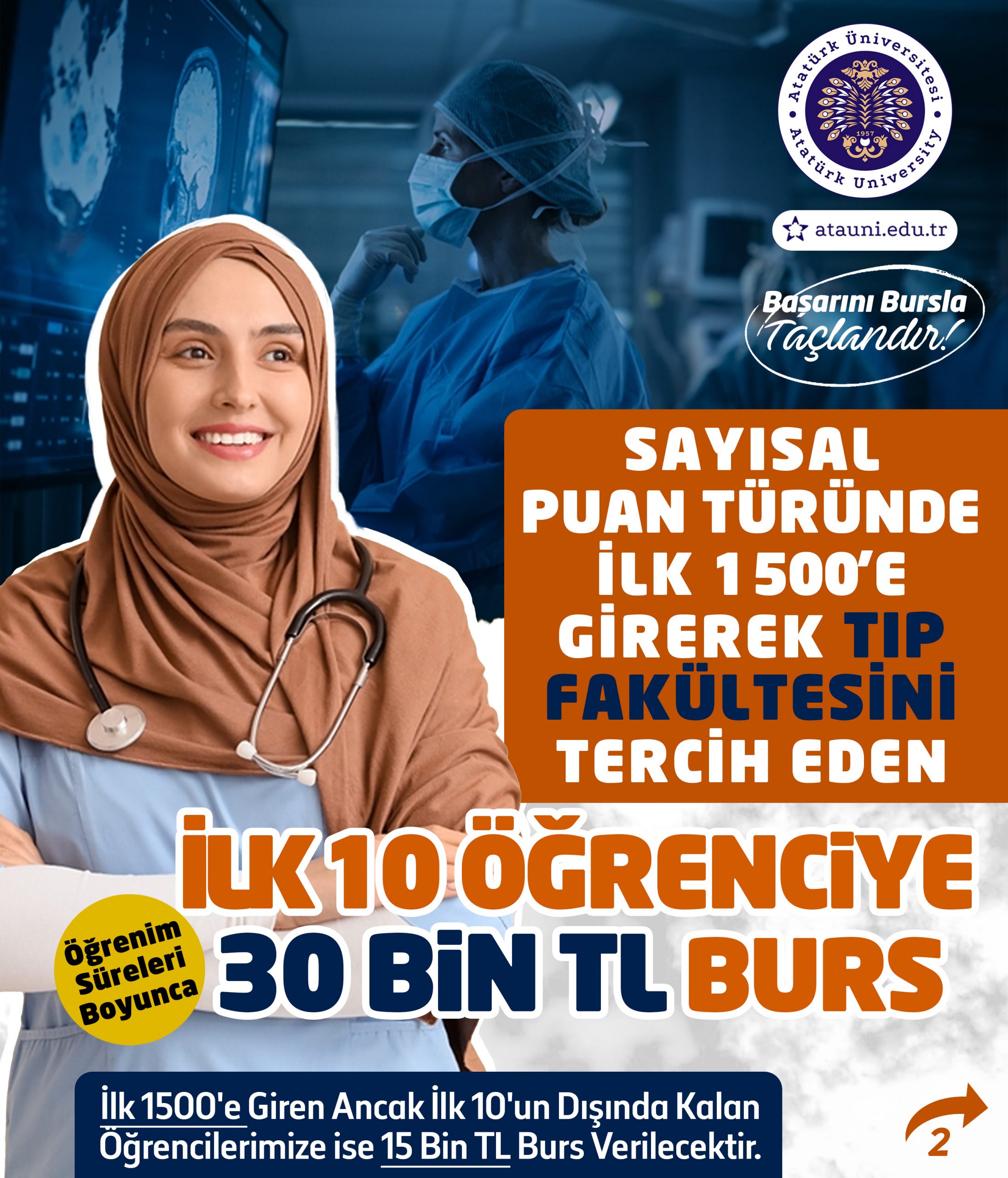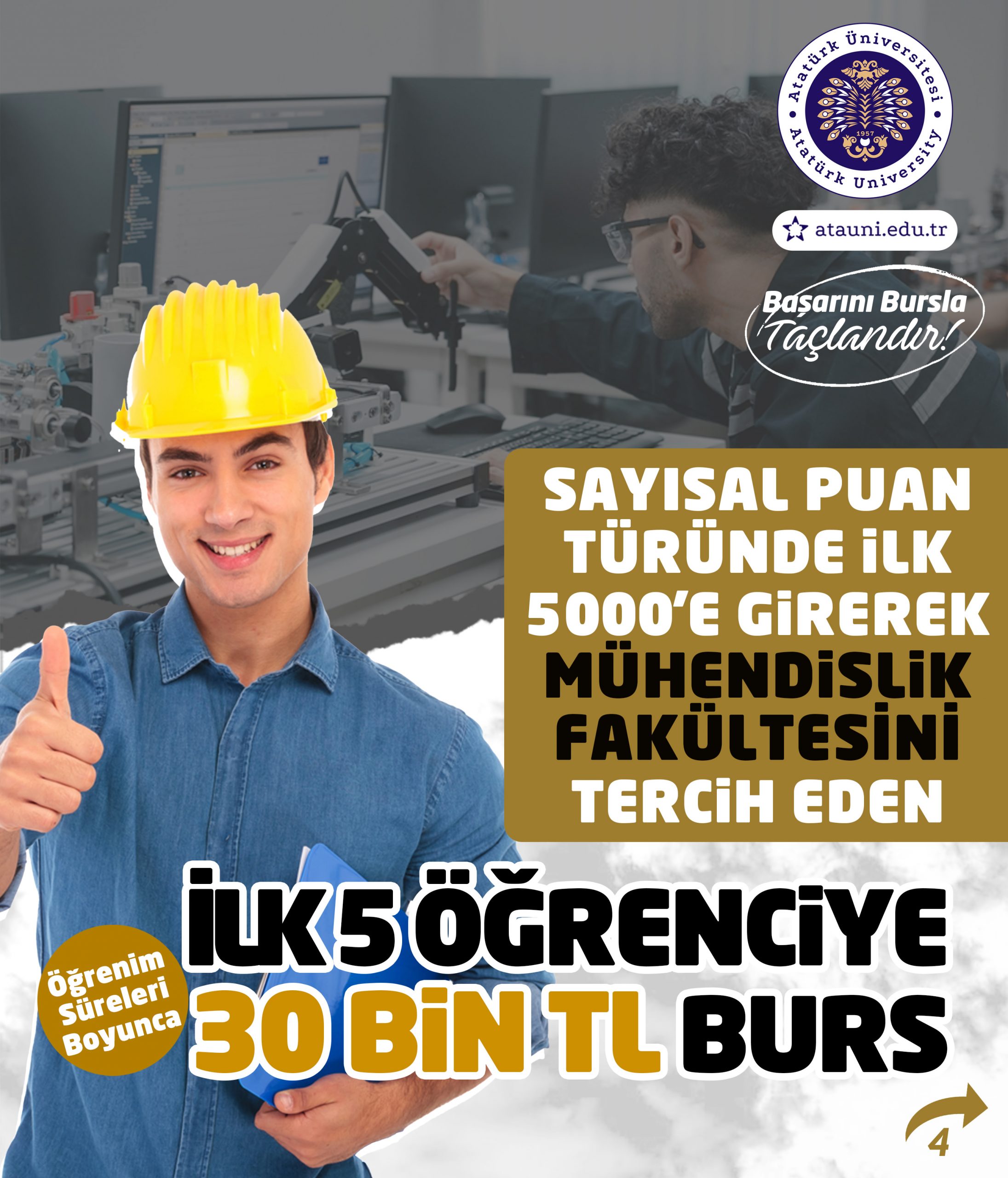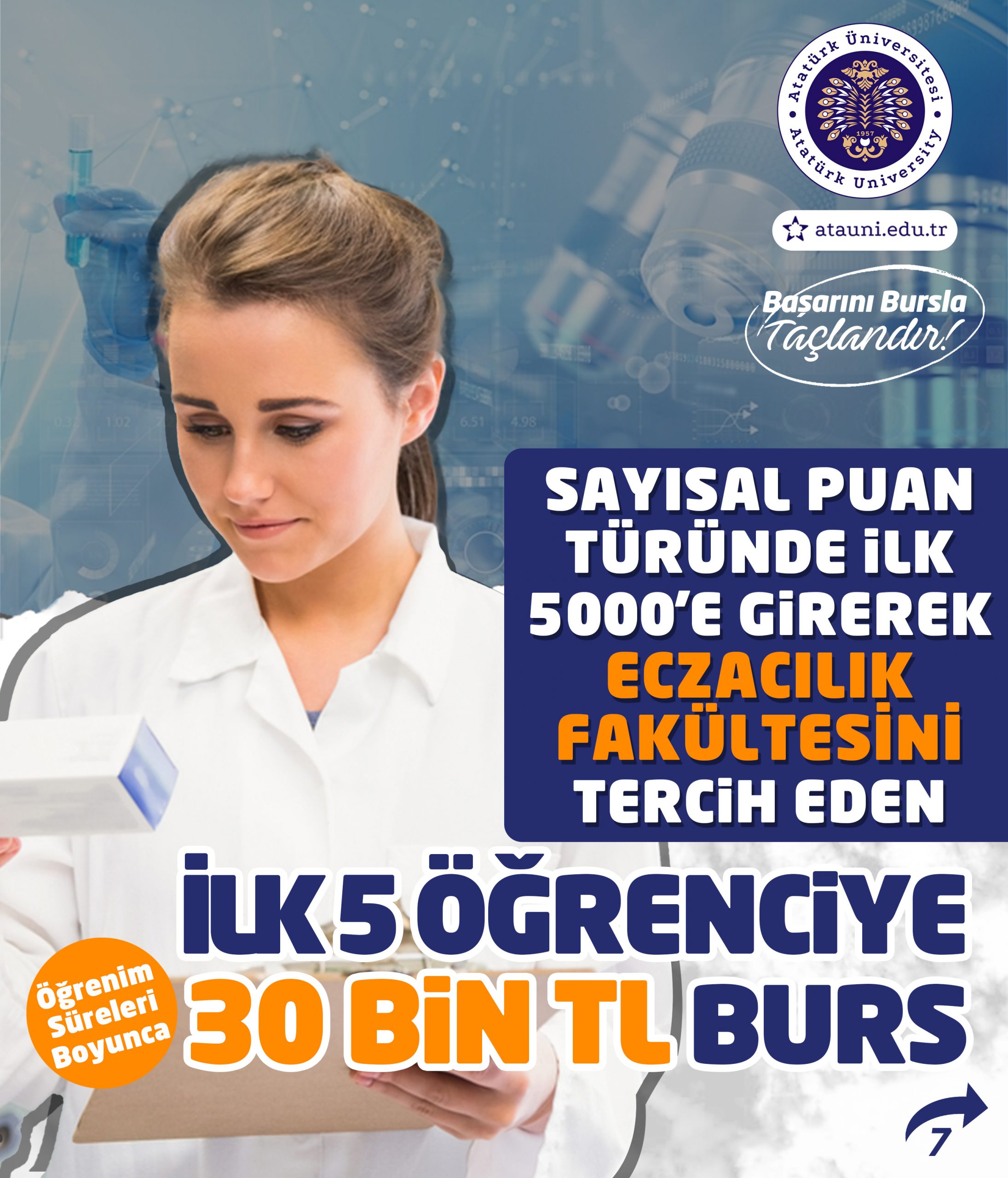 Atatürk Üniversitesi Kalkındırma Vakfı, Yükseköğretim Kurumları Sınavında derece yapan öğrencilerimize aylık 30.000TL burs imkânı sunuyor!