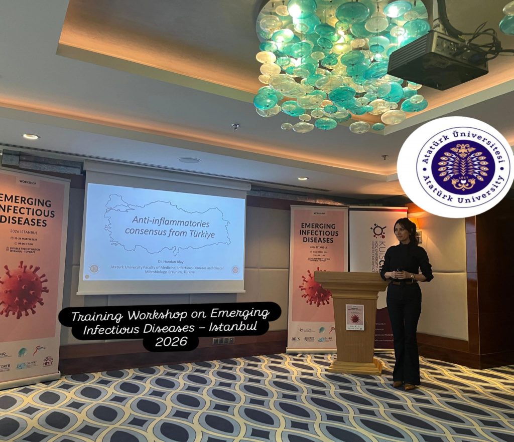 Toplantıya Atatürk Üniversitesi Tıp Fakültesi’ni temsilen katılım sağlanarak “Kırım Kongo Kanamalı Ateşi’nde antiinflamatuvar tedavi yaklaşımları” konulu bir sunum gerçekleştirildi. Sunumda Kırım Kongo Kanamalı Ateşi’nin patogenezi, inflamatuvar yanıtın hastalık şiddeti ile ilişkisi ve antiinflamatuvar tedavi seçeneklerinin klinik kullanımına yönelik güncel yaklaşımlar ele alındı.