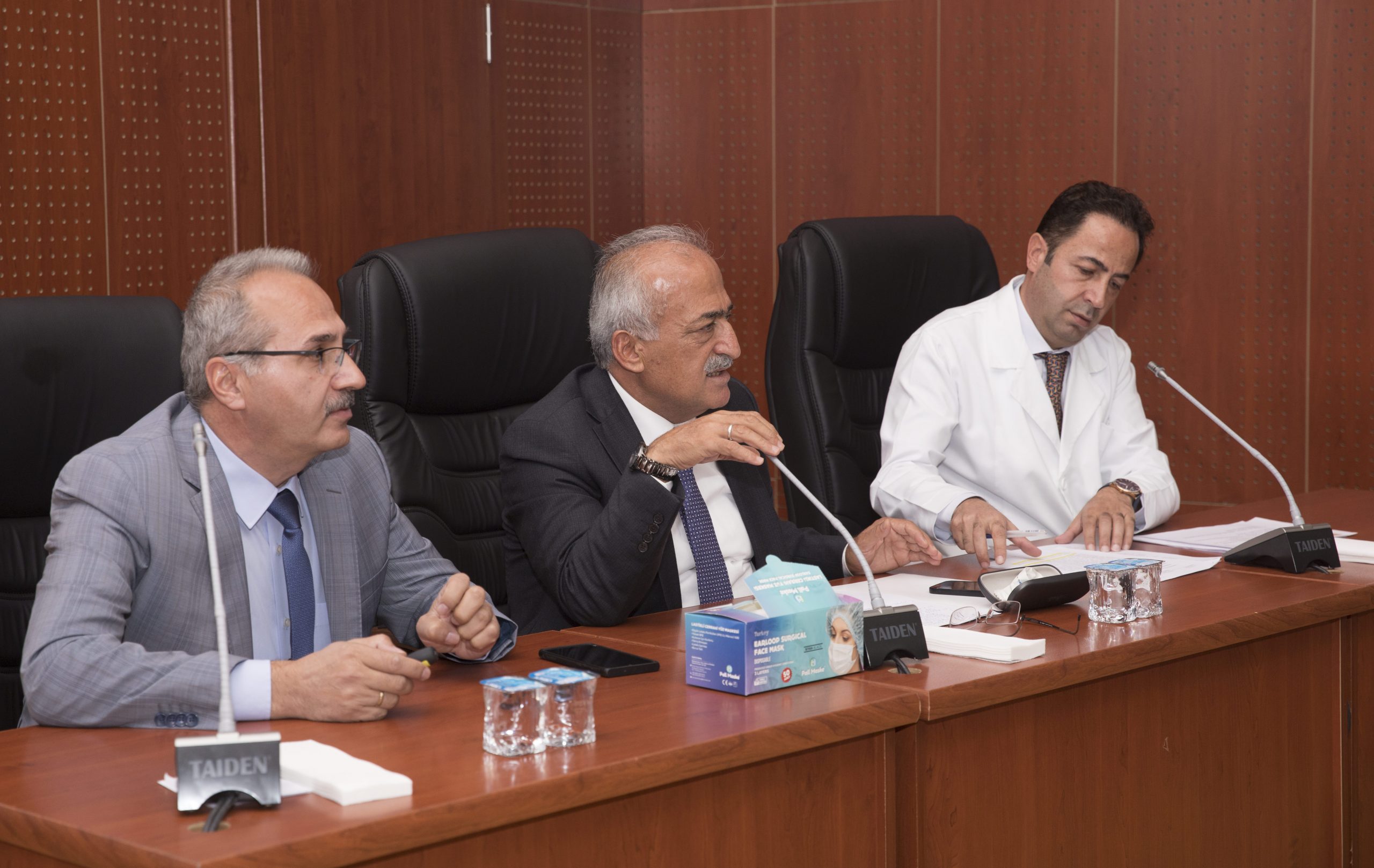 In the conference hall of the Research Hospital, Dean of the Faculty of Medicine Prof. Dr. Fatih Albayrak and the Chief Physician of the hospital Prof. Dr. Rector Çomaklı, who met with academicians together with Fuat Gündoğdu; exchanged ideas on advice, requests and suggestions.