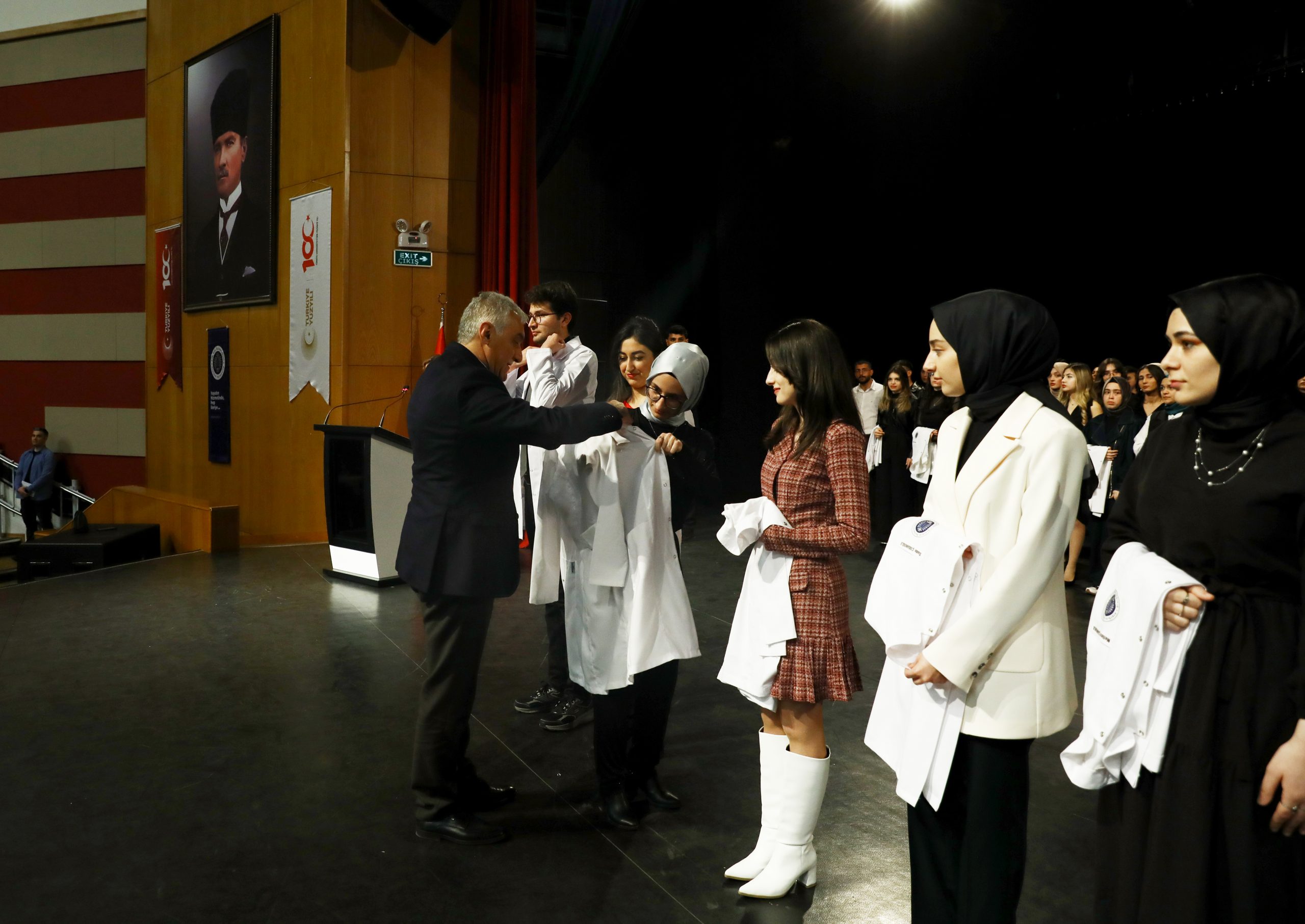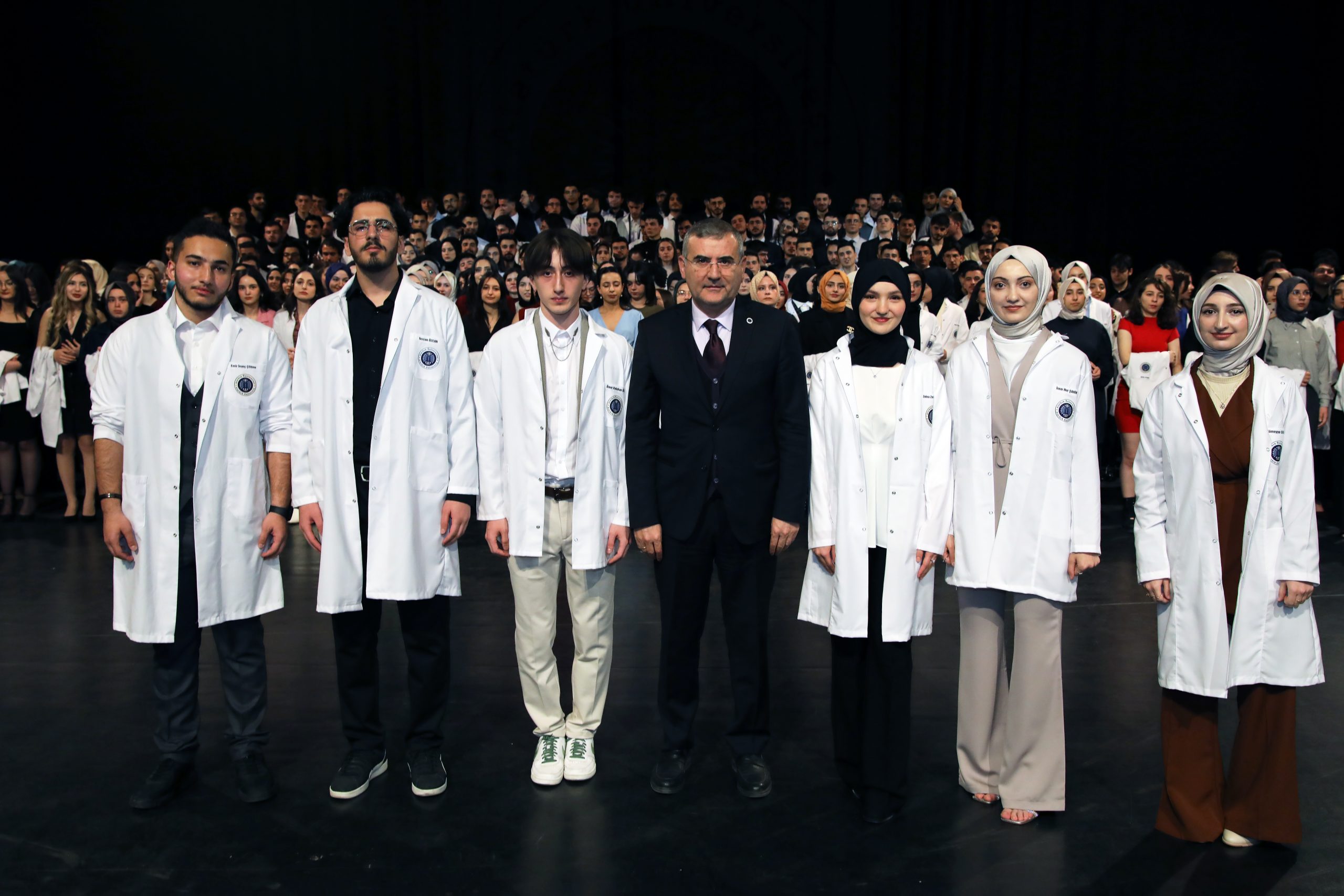 Rector Çomaklı: “There is one factor that does not change in this progress and always keeps its importance in the first place, and that is human knowledge equipment. Although the technology used has changed, the human value of the health worker who uses it, who adds his heart, labour and patience to his work has increased exponentially. It is very difficult to find an expression of our gratitude to healthcare workers for their self-sacrificing struggle away from their families, for the war they put forth with all their physical and spiritual labour. Medicine is a difficult art shaped on human love. Our physicians provide services for patients to find health regardless of working hours. I congratulate the holiday of all our physicians, academicians and healthcare professionals who strive to provide a healthy and happy life. I also sincerely congratulate the future doctor candidates and their families who are excited to wear the apron for the first time on this meaningful day and wish them continued success.”