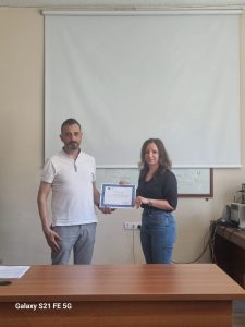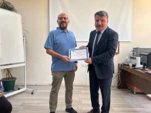 At the end of the interactive five-day programme, our vice deans of the Faculty Prof. Dr. M. Hamidullah UYANIK and Prof. Dr. Kemalettin ÖZDEN presented certificates of appreciation and participation to our faculty members who contributed to the training and participated in the training.