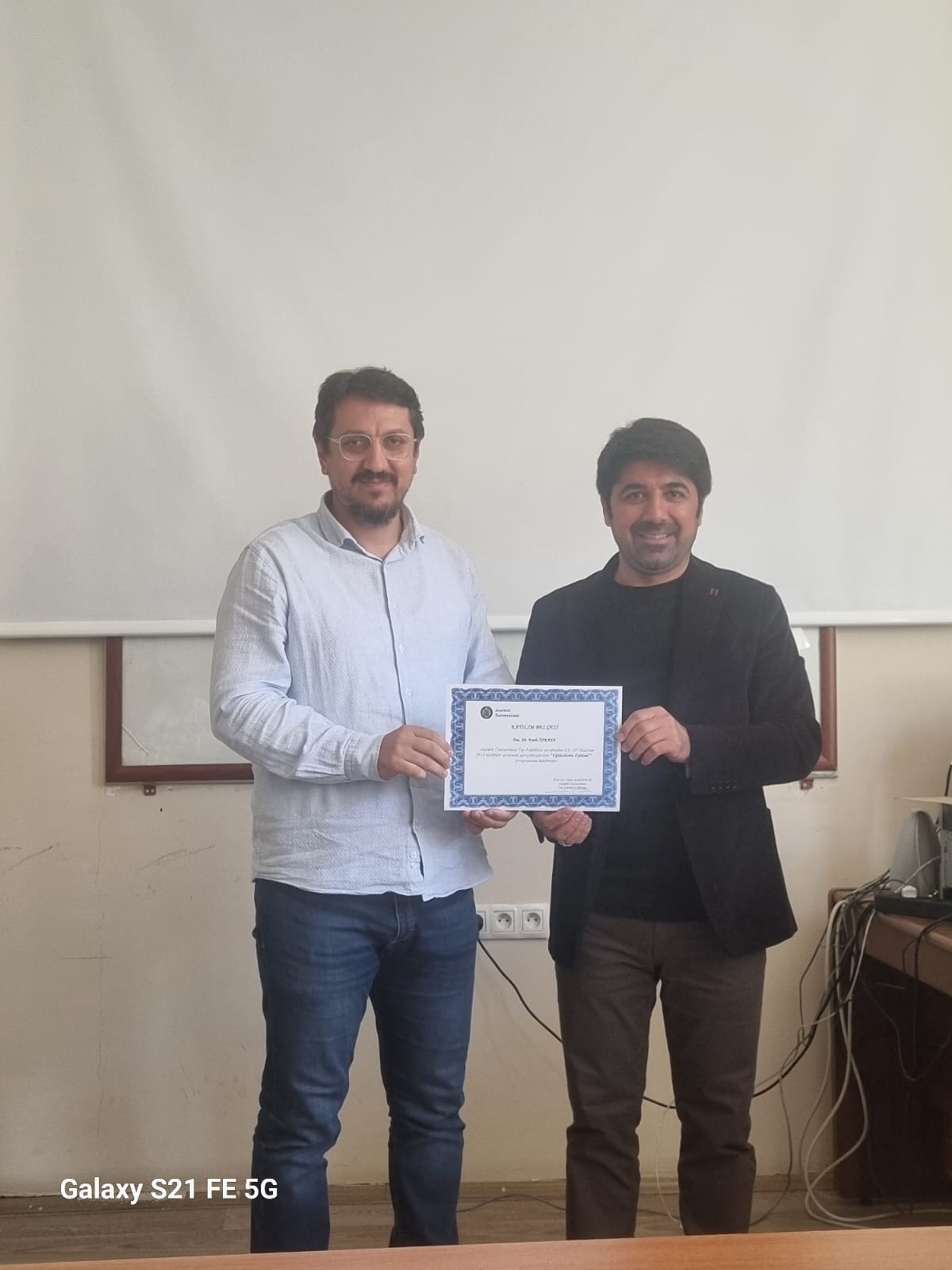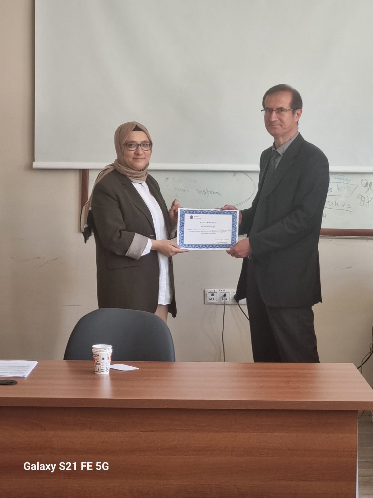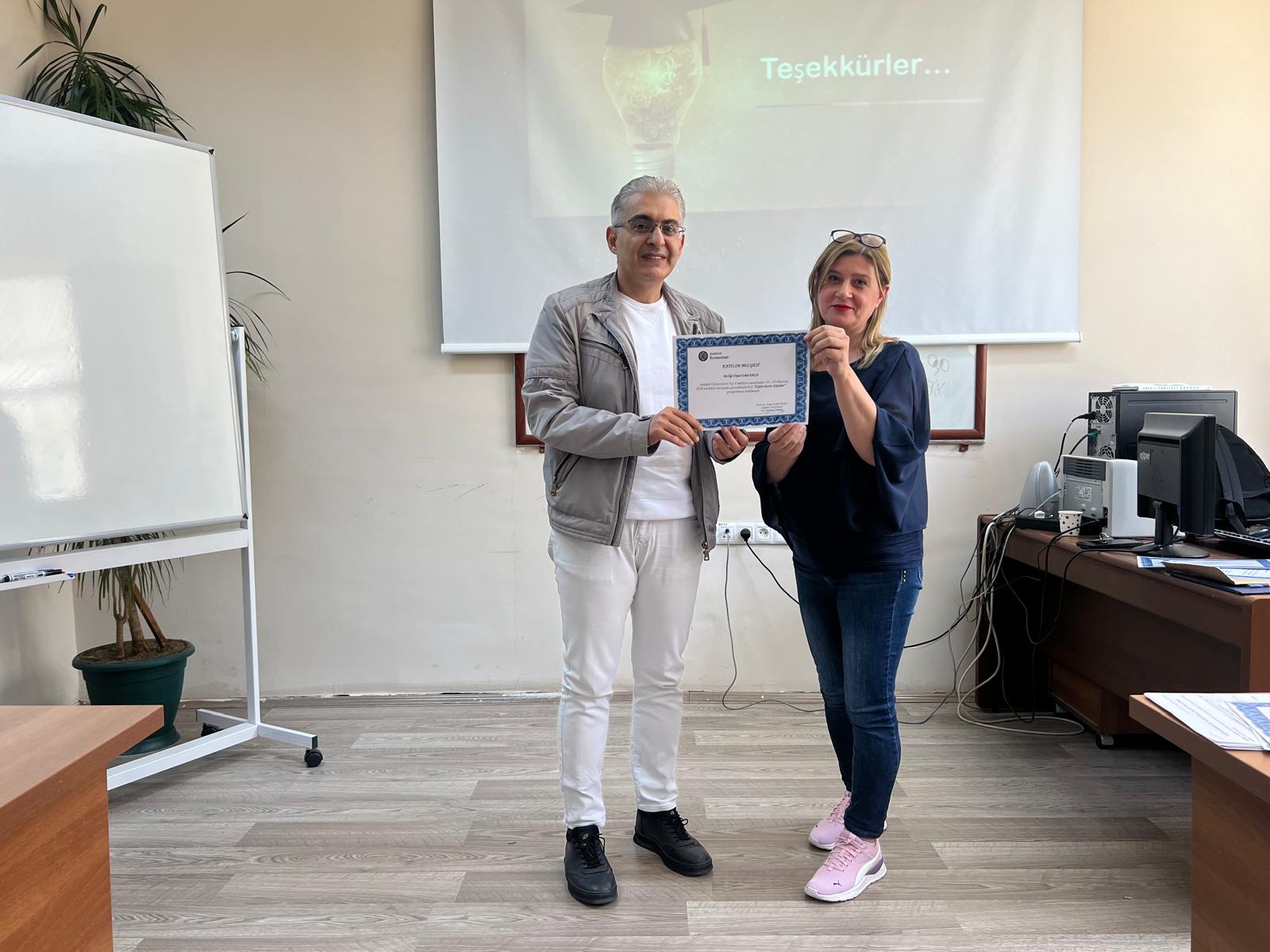At the end of the interactive five-day programme, our vice deans of the Faculty Prof. Dr. M. Hamidullah UYANIK and Prof. Dr. Kemalettin ÖZDEN presented certificates of appreciation and participation to our faculty members who contributed to the training and participated in the training.