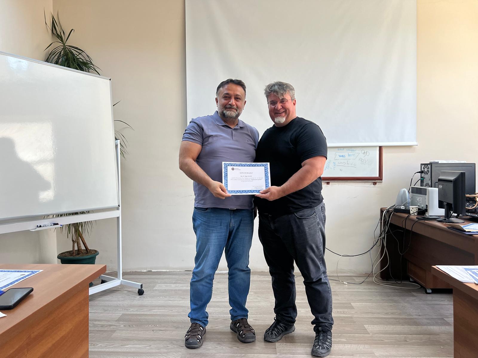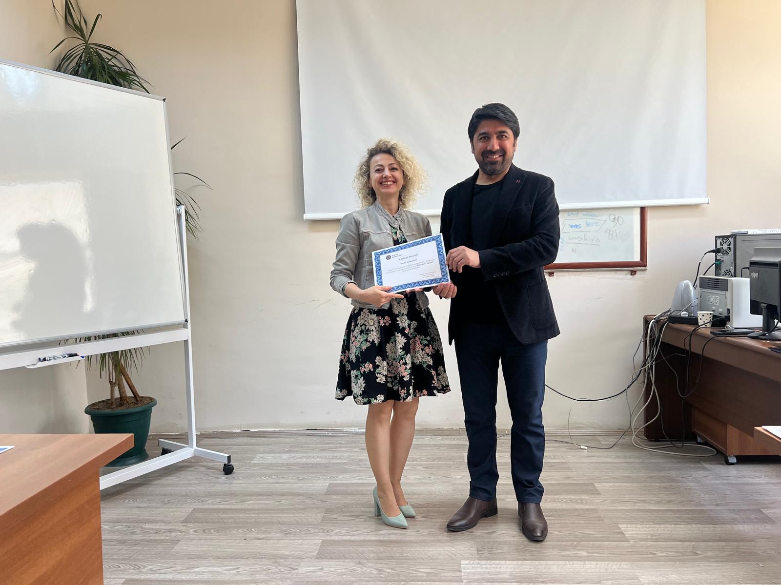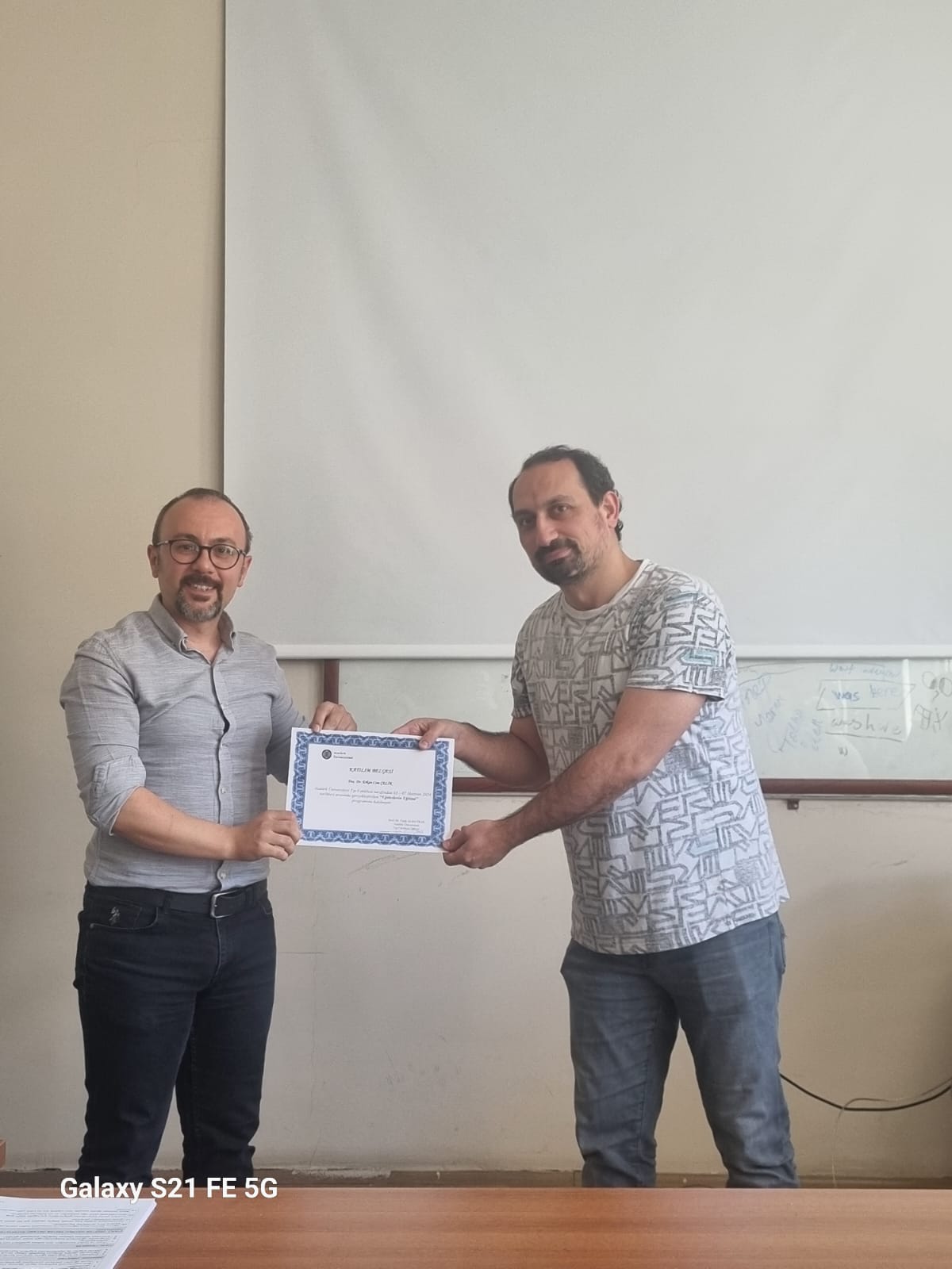 At the end of the interactive five-day programme, our vice deans of the Faculty Prof. Dr. M. Hamidullah UYANIK and Prof. Dr. Kemalettin ÖZDEN presented certificates of appreciation and participation to our faculty members who contributed to the training and participated in the training.