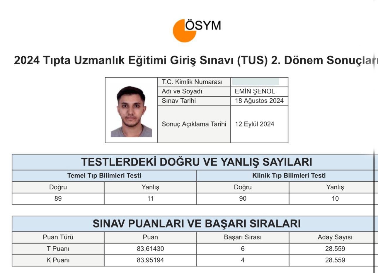 10 October 2024 Our student Emin ŞENOL ranked 4th in 2024 TUS. Tıp Fakültesi mezun öğrencilerimizden Emin ŞENOL 2024 Tıpta Uzmanlık Eğitimi Giriş Sınavında 4. olmuştur. Kendisini tebrik eder başarılarının devamını dileriz.Tıp Fakültesi Dekanlığı