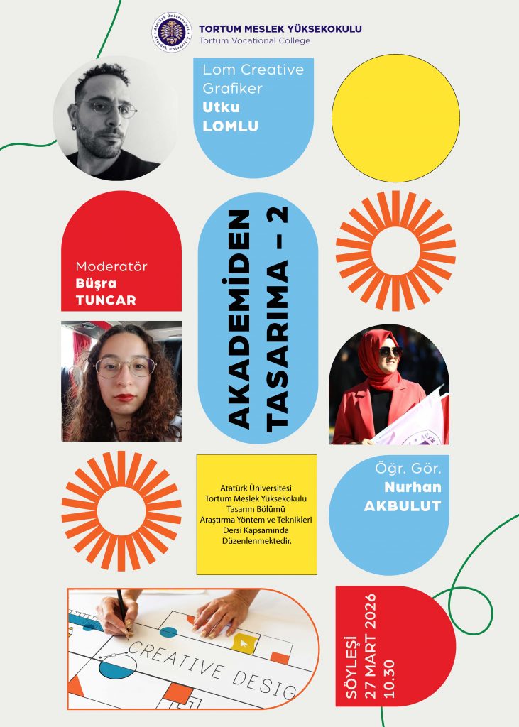“Araştırma Yöntem ve Teknikleri” dersi kapsamında, öğrencilerimizin bilimsel bakış açılarını geliştirmek amacıyla düzenlenen “Akademiden Tasarıma 2” başlıklı söyleşi etkinliğimizin konuğu Grafiker Utku LOMLU olacaktır.