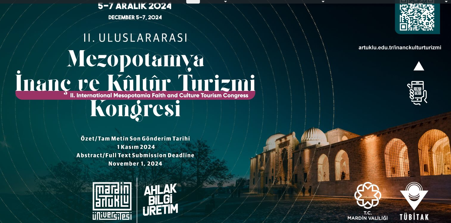 Fakültemiz akademisyenleri, Mardin Artuklu Üniversitesi Turizm Fakültesi’nin 5 – 7 Aralık 2024 tarihlerinde ev sahipliği yaptığı“II Uluslararası Mezopotamya İnanç ve Kültür Turizmi Kongresi” ne yüz yüze ve çevrim içi olarak toplamda 15 bildiri ile katılım sağlamışlardır. Kongreye destek veren tüm akademisyenlerimize teşekkürlerimizi sunarız.