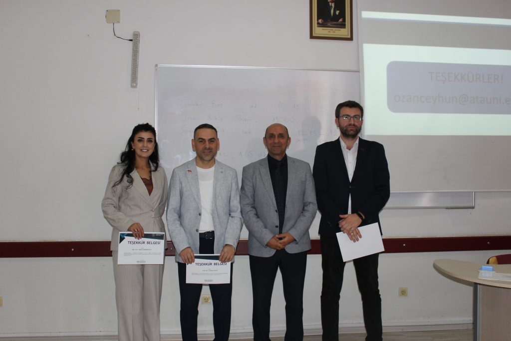 Turizm Fakültesi ile Atatürk Üniversitesi Ölçme ve Geliştirme Merkezi (ATAÖGEM) iş birliğinde düzenlenen eğitim programları, 18 Eylül Perşembe günü katılımcıların yoğun ilgisiyle gerçekleştirildi. Sabah saat 09.00’da başlayan “Turizm Eğitiminde Yapay Zeka Destekli Ölçme ve Değerlendirme Atölyesi” ile başlayan program, saat 14.00’te “Turizm Eğitiminde Ölçme ve Değerlendirme Semineri” ile devam etti. Eğitimler kapsamında katılımcılara, turizm alanında ölçme-değerlendirme süreçlerine yönelik güncel yaklaşımlar ve yapay zeka destekli uygulamalar hakkında bilgi verildi. Etkinliğin kapanışında Turizm Fakültesi Dekanı Prof. Dr. Gökalp Selçuk, katkılarından dolayı katılımcılara ve düzenleme kuruluna teşekkür belgelerini takdim etti.