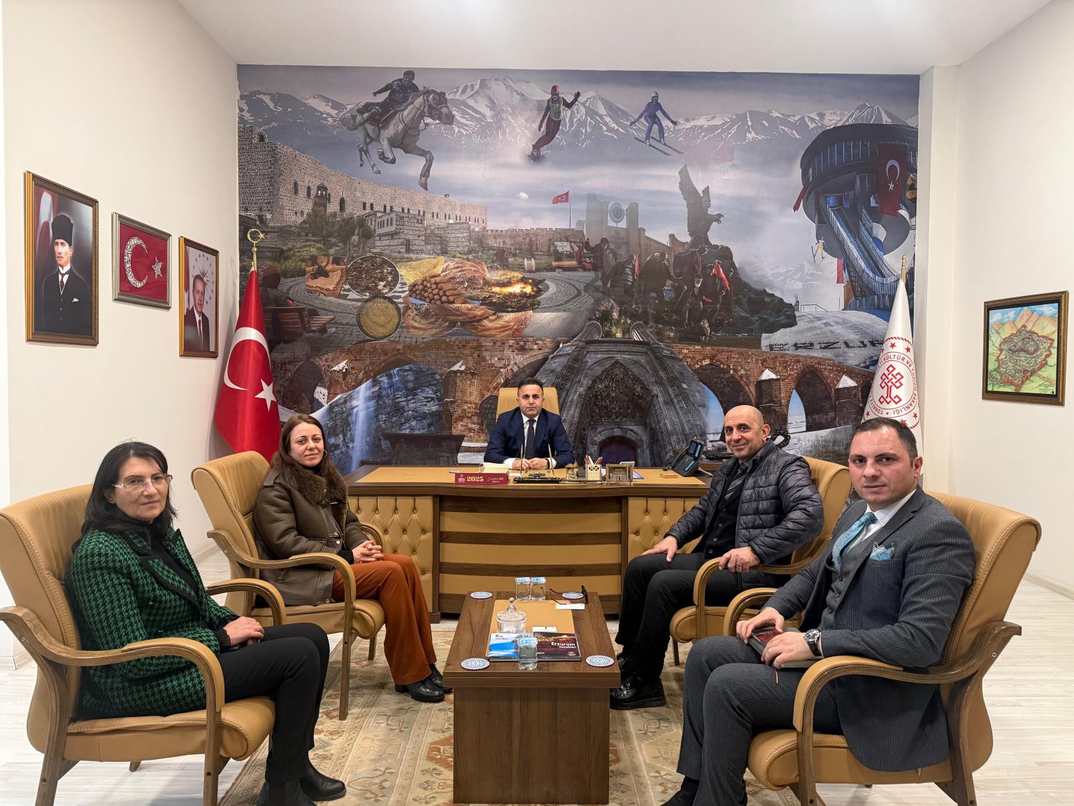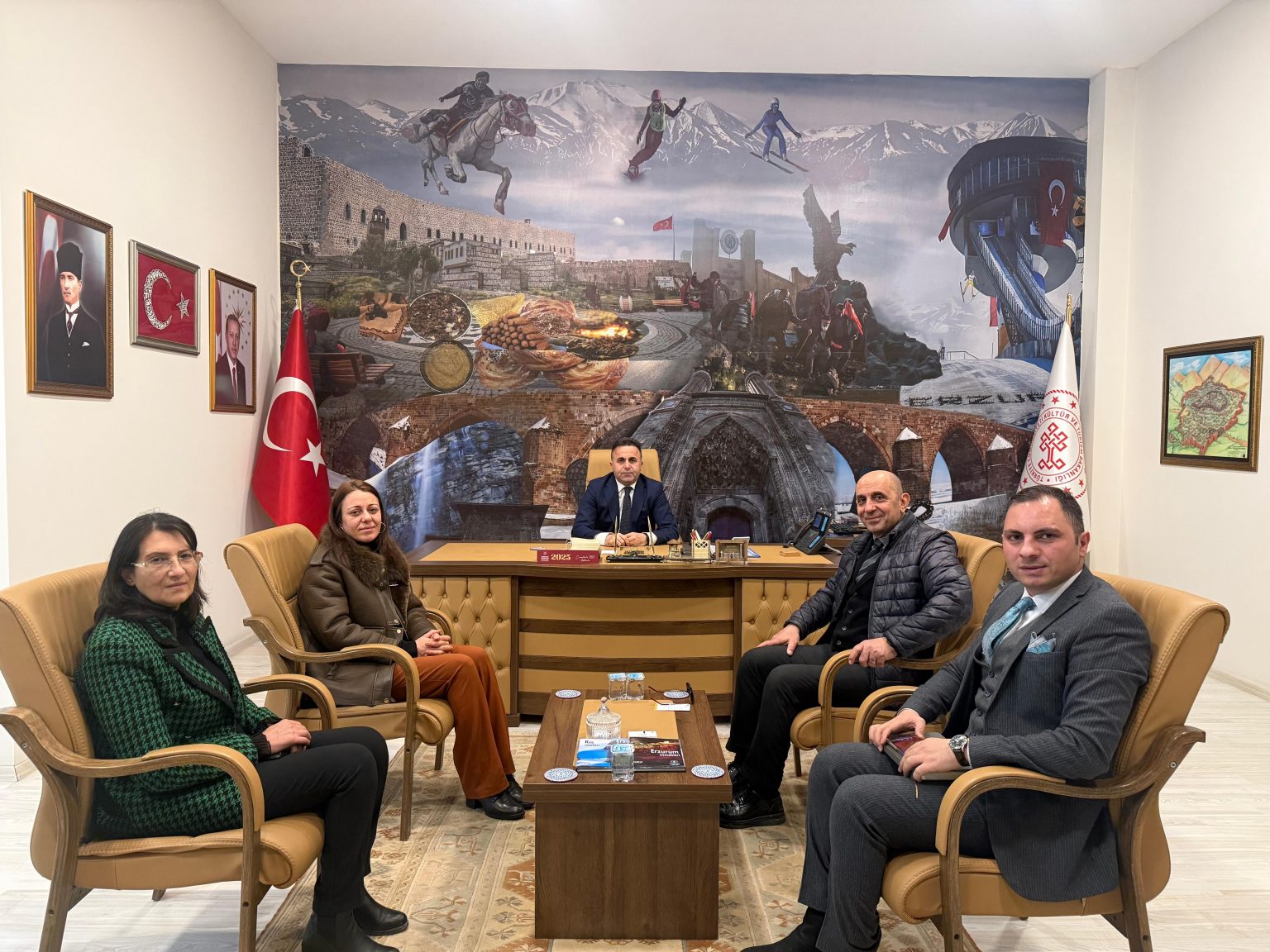 Turizm Fakültesi Dekanımız Prof. Dr. Gökalp Nuri Selçuk ve Dekan Yardımcımız Doç. Dr. Neslihan Serçeoğlu, Erzurum İl Kültür ve Turizm Müdürü Ahmet Yer’i ziyaret etti.