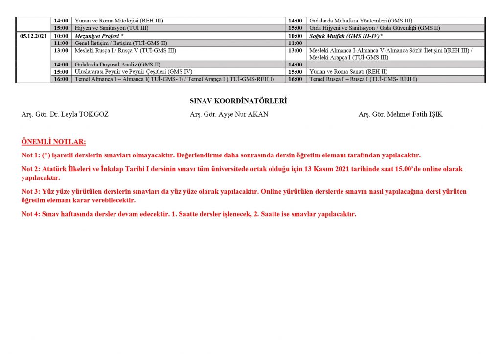 Vize Sınav Programı