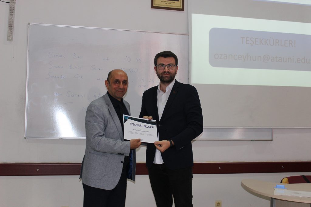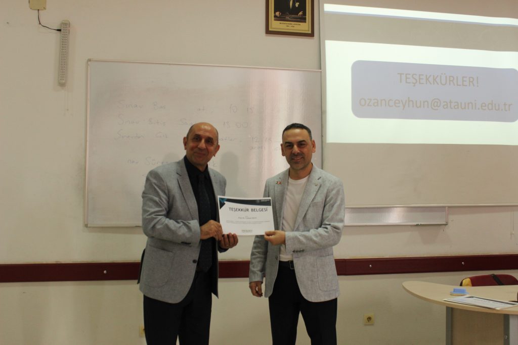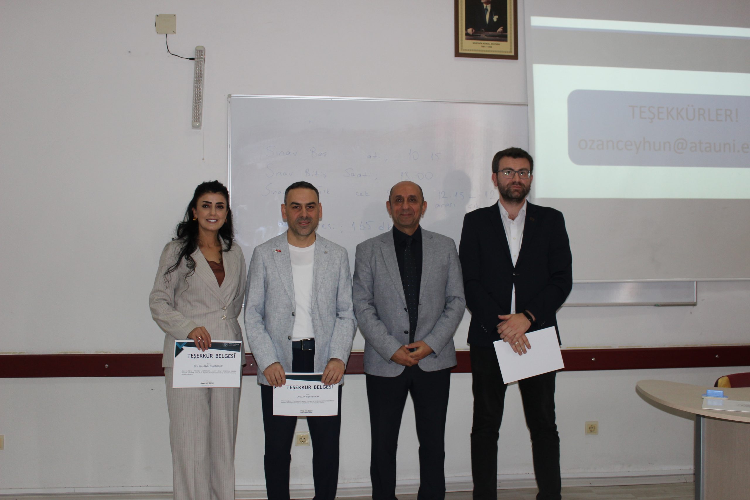 Turizm Fakültesi ile Atatürk Üniversitesi Ölçme ve Geliştirme Merkezi (ATAÖGEM) iş birliğinde düzenlenen eğitim programları, 18 Eylül Perşembe günü katılımcıların yoğun ilgisiyle gerçekleştirildi. Sabah saat 09.00’da başlayan “Turizm Eğitiminde Yapay Zeka Destekli Ölçme ve Değerlendirme Atölyesi” ile başlayan program, saat 14.00’te “Turizm Eğitiminde Ölçme ve Değerlendirme Semineri” ile devam etti. Eğitimler kapsamında katılımcılara, turizm alanında ölçme-değerlendirme süreçlerine yönelik güncel yaklaşımlar ve yapay zeka destekli uygulamalar hakkında bilgi verildi. Etkinliğin kapanışında Turizm Fakültesi Dekanı Prof. Dr. Gökalp Selçuk, katkılarından dolayı katılımcılara ve düzenleme kuruluna teşekkür belgelerini takdim etti.
