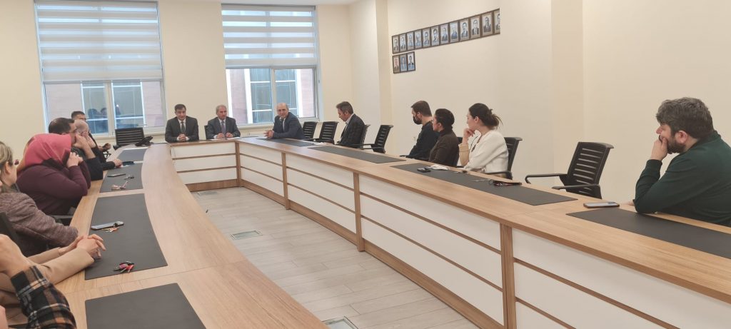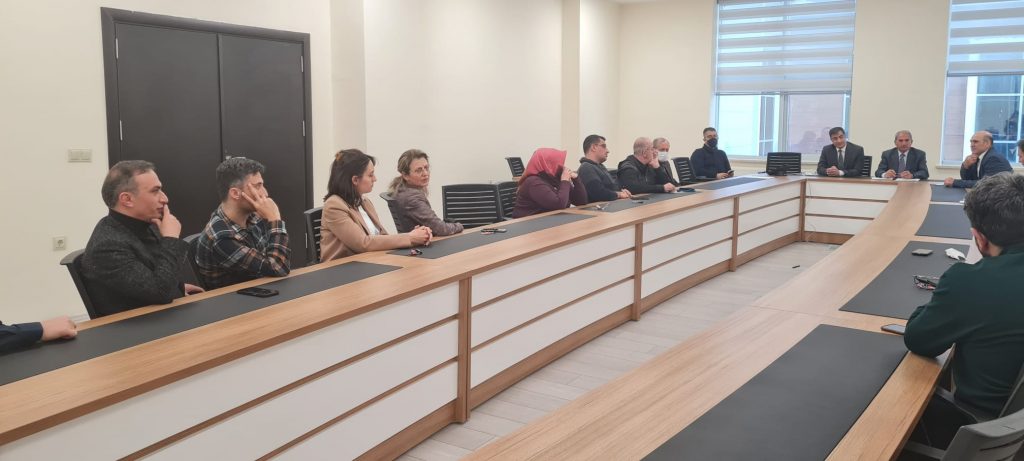 Türk Dili ve Edebiyatı bölümü öğretim üyeleri 14.04.2022 tarihinde saat 14.00’te değerlendirmeler yapmak üzere sayın rektör yardımcısı Prof. Dr. Turgut GÖĞEBAKAN, sayın dekan Prof. Dr. Dilaver DÜZGÜN ve sayın dekan yardımcısı Doç. Dr. Savaş EĞİLMEZ eşliğinde toplandı.