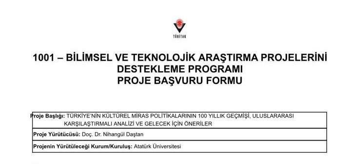 Doç. Dr. Nihangül Daştan’ın “Türkiye’nin Kültürel Miras Politikalarının 100 Yıllık Geçmişi, Uluslararası Karşılaştırmalı Analizi ve Gelecek İçin Öneriler” başlıklı TÜBİTAK 1001 projesi desteklendi.