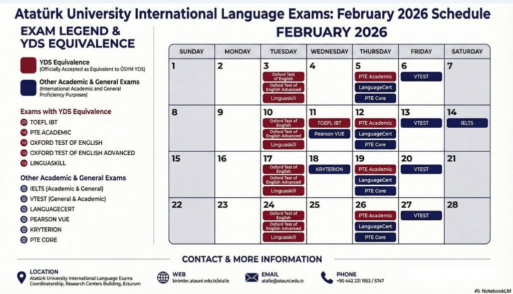 Atatürk Üniversitesi Uluslararası Dil Sınavları Şubat Ayı Takvimi