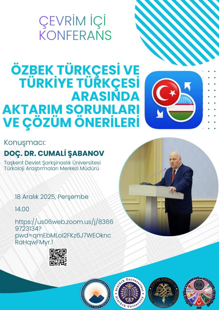 18 Aralık 2025 tarihinde saat 14.00’te Taşkent Devlet Şarkşinaslık Üniversitesi Türkoloji Araştırmaları Merkezi Müdürü Doç. Dr. Cumali Şabanov tarafından “Özbekçe ve Türkiye Türkçesi Arasında Aktarım Sorunları ve Çözüm Önerileri” başlıklı bir seminer gerçekleştirildi.