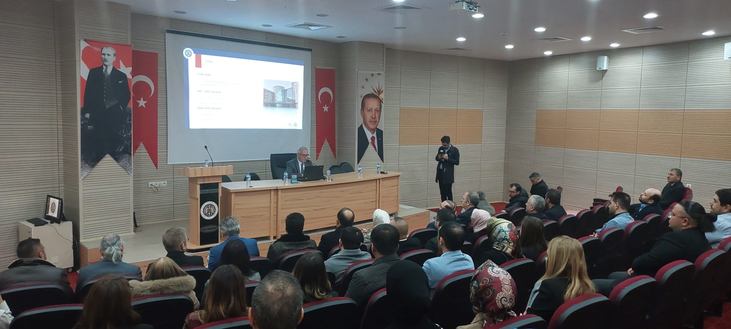 Rektörümüz Prof. Dr. Ahmet HACIMÜFTÜOĞLU ve ekibinin fakültemize gerçekleştirdiği ziyarete akademik ve idari personel olarak tam katılım sağlanırken tanıtım sunumunun ardından hayata geçirilecek projeler, iyileştirmeler ve destekler hakkında bilgiler verildi.