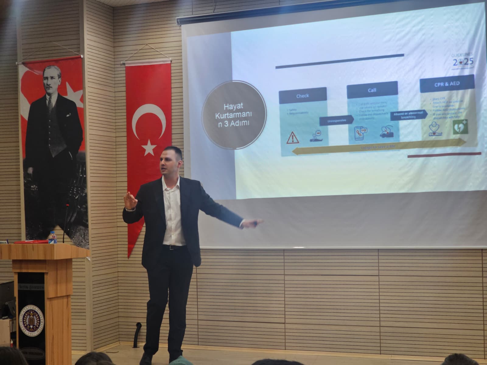 Uzman Doktor Egemen Tavrak, Fakültemizde Temel Yaşam Desteği eğitimiyle bizlerleydi. Saniyelerle yarışırken soğukkanlı kalmanın ve doğru müdahalenin yollarını öğrendik. Bu kıymetli eğitim için Egemen Tavrak’a çok teşekkür ederiz.
