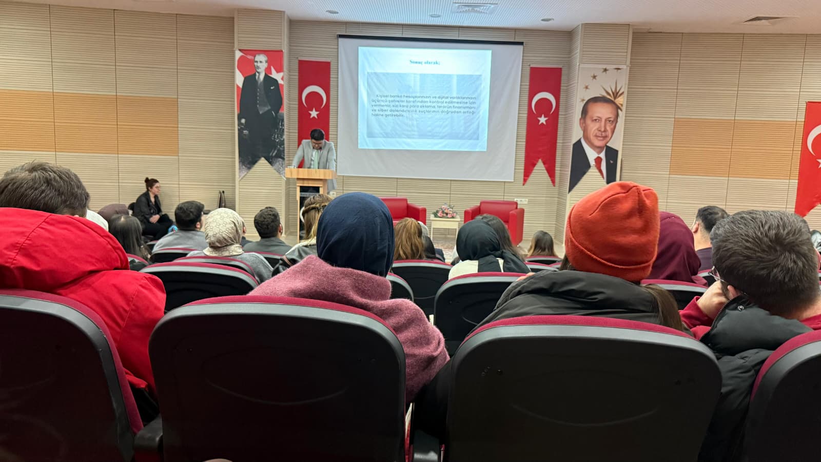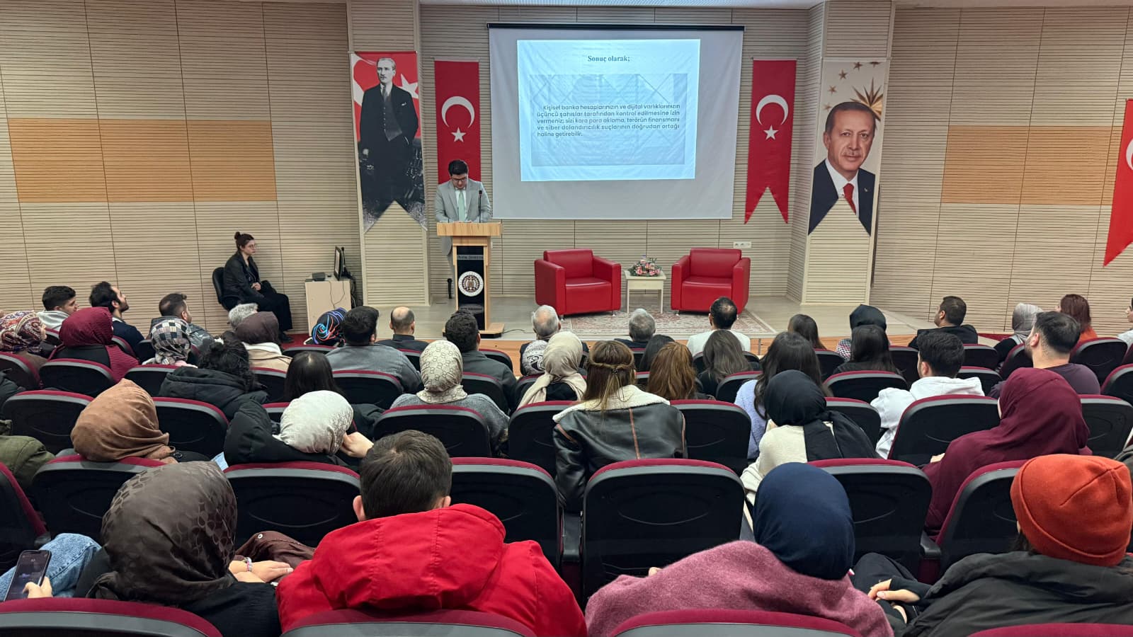 Günlük hayatta “kolay para” gibi görünen tekliflerin arkasındaki hukuki ve cezai riskler, IBAN paylaşmanın doğurabileceği ciddi sonuçlar, dolandırıcılığa karşı nasıl önlem alınması gerektiği detaylarıyla ele alındı. Bilinçlenmek, korunmanın ilk adımıdır. Katkı sağlayan Cumhuriyet Savcımıza ve katılımcılara teşekkür ederiz.