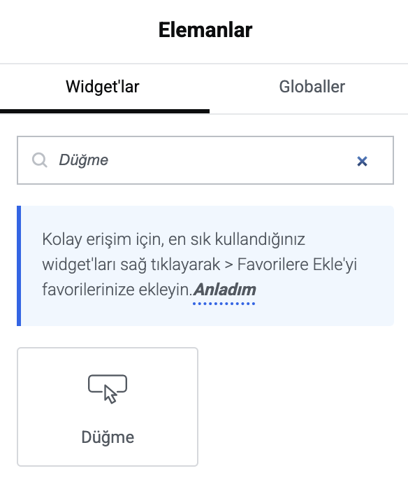 Düğme kutucuğunu sürükleyip düğmenizi konumlandırmak istediğiniz bölüme bırakınız.