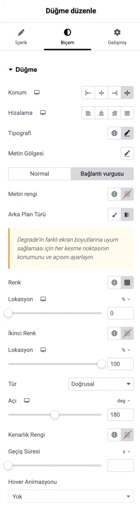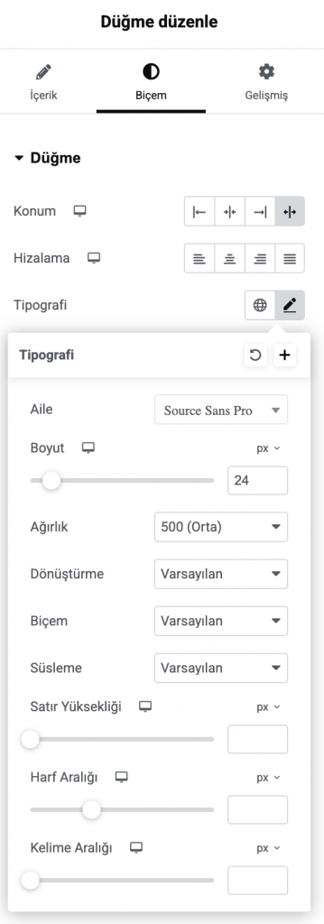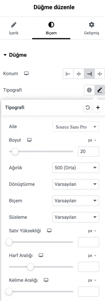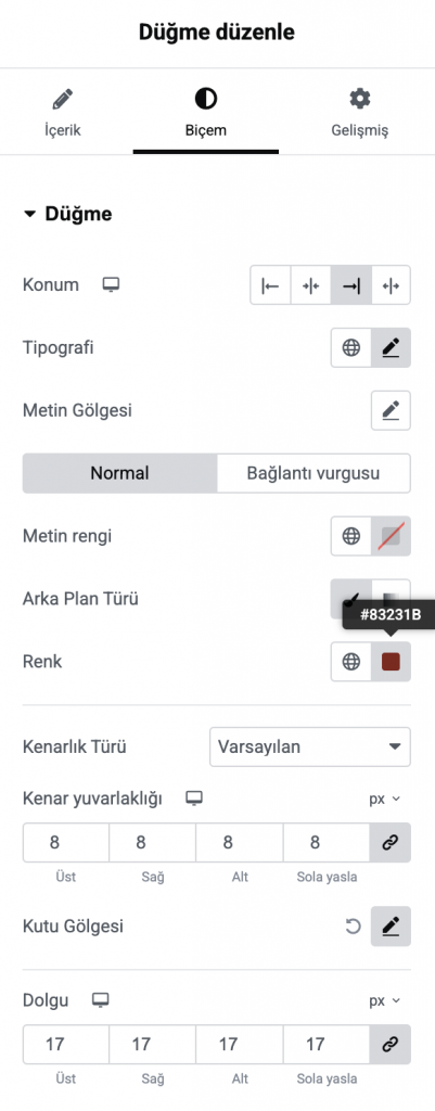 Biçem sekmesinden ayarlarınızı eşitleyiniz.