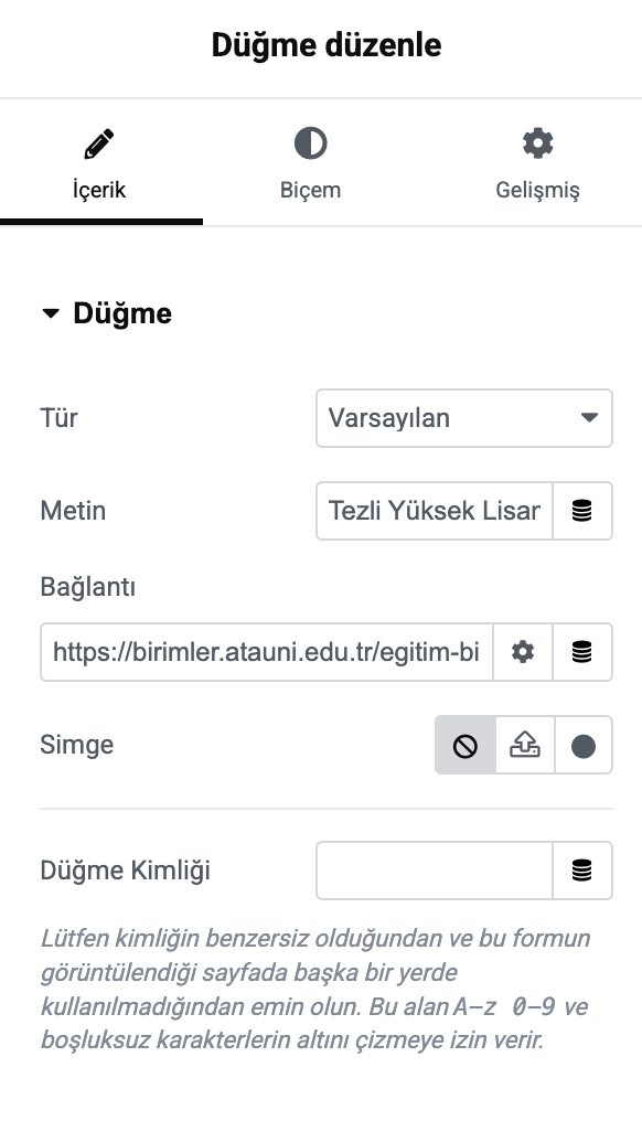 Düğmenizi metin kısmından adlandırınız.Bağlantınızı yapıştırınız.