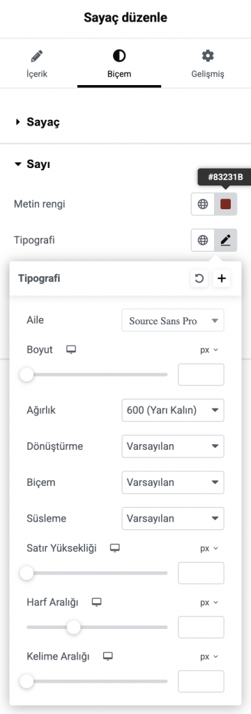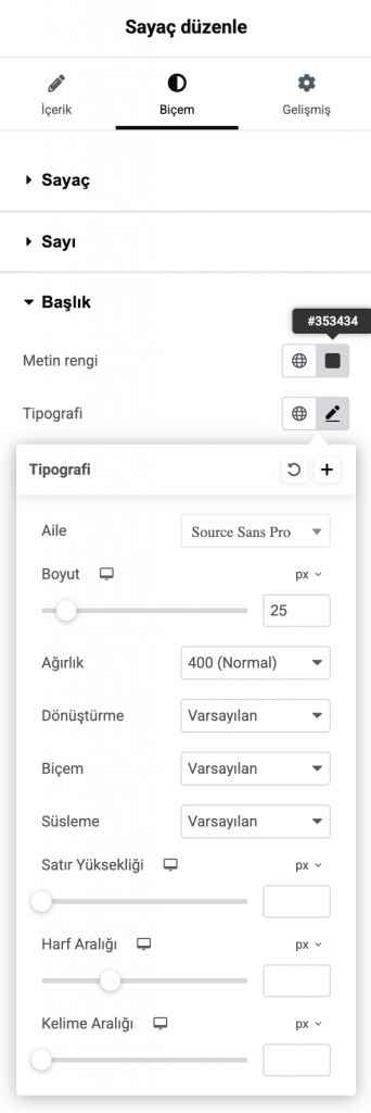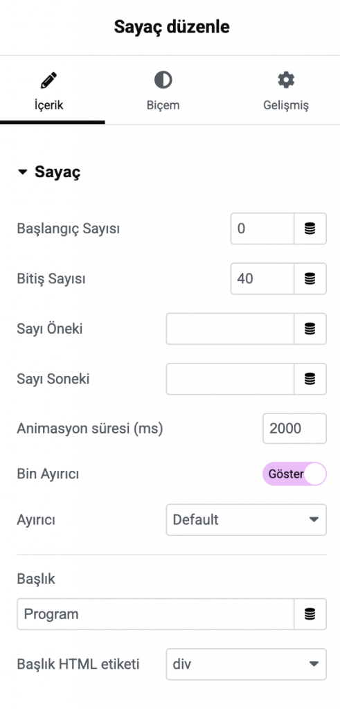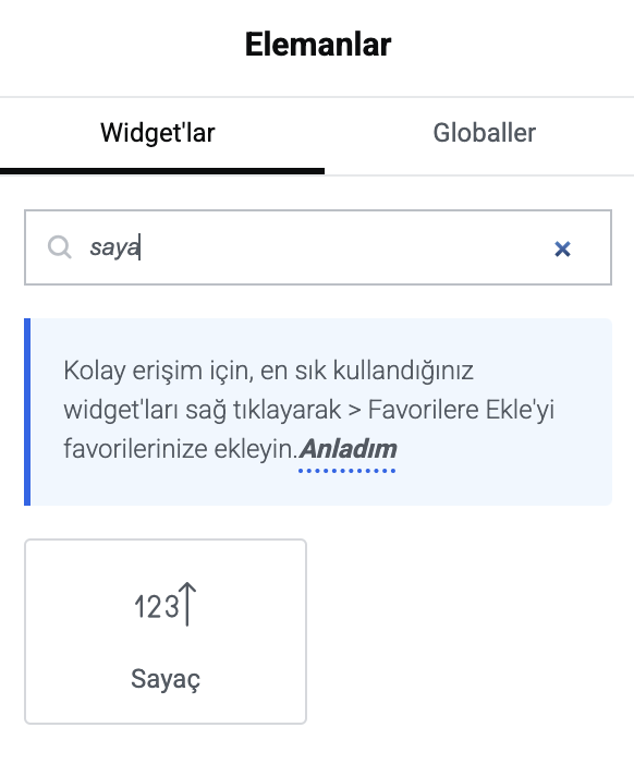 Sayaç kutucuğunu sürükleyip sayacınızı konumlandırmak istediğiniz bölüme bırakınız.